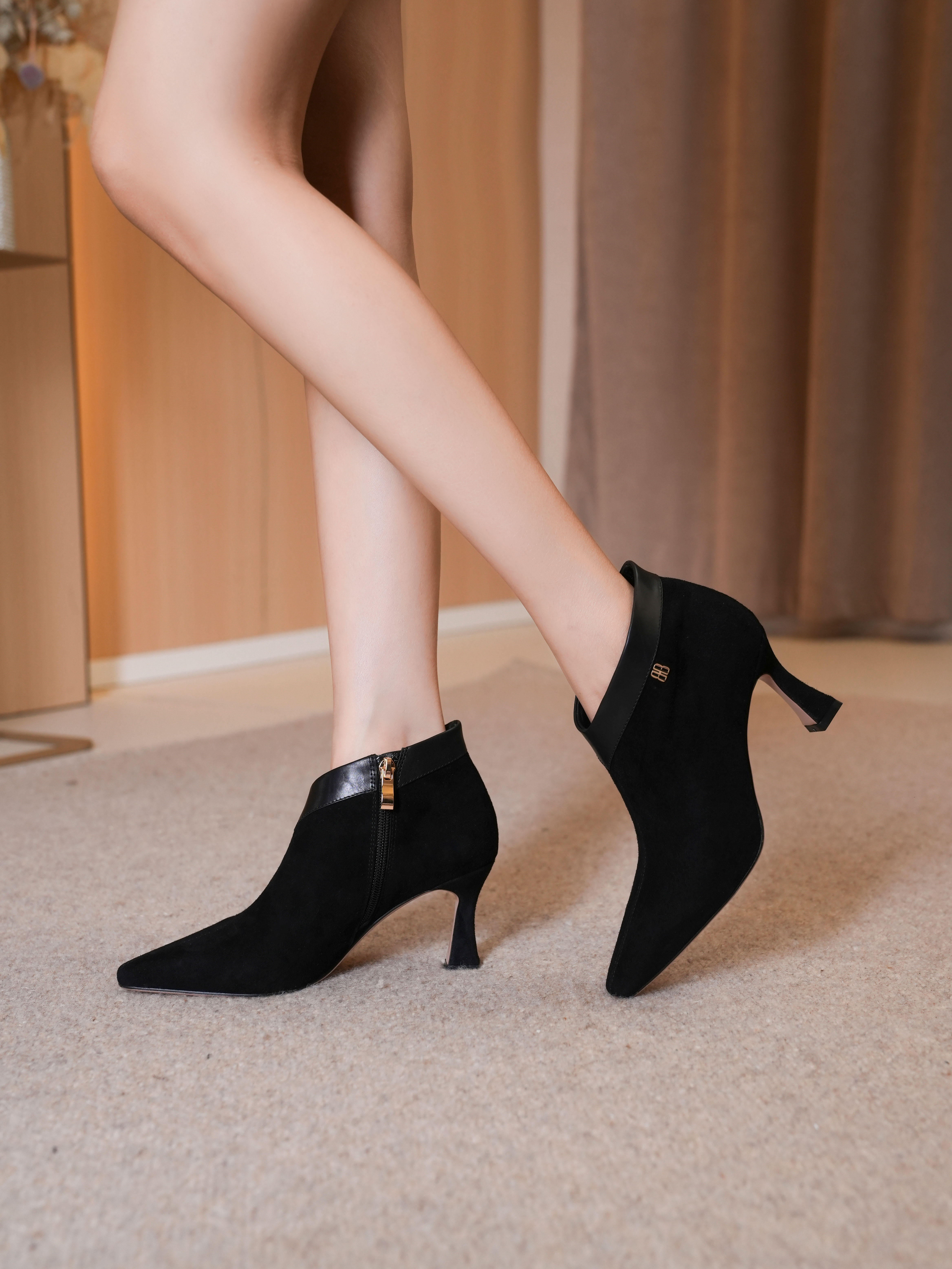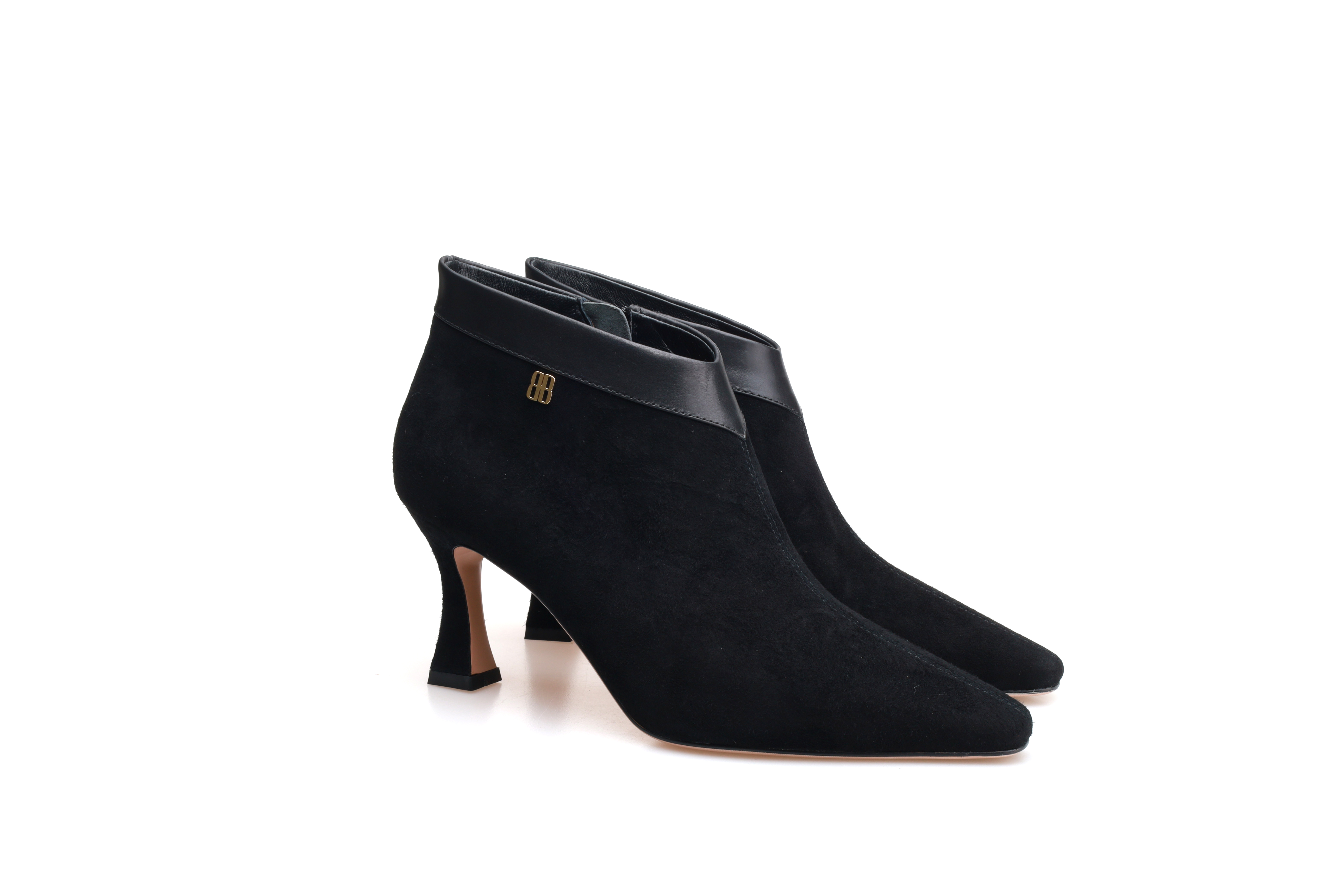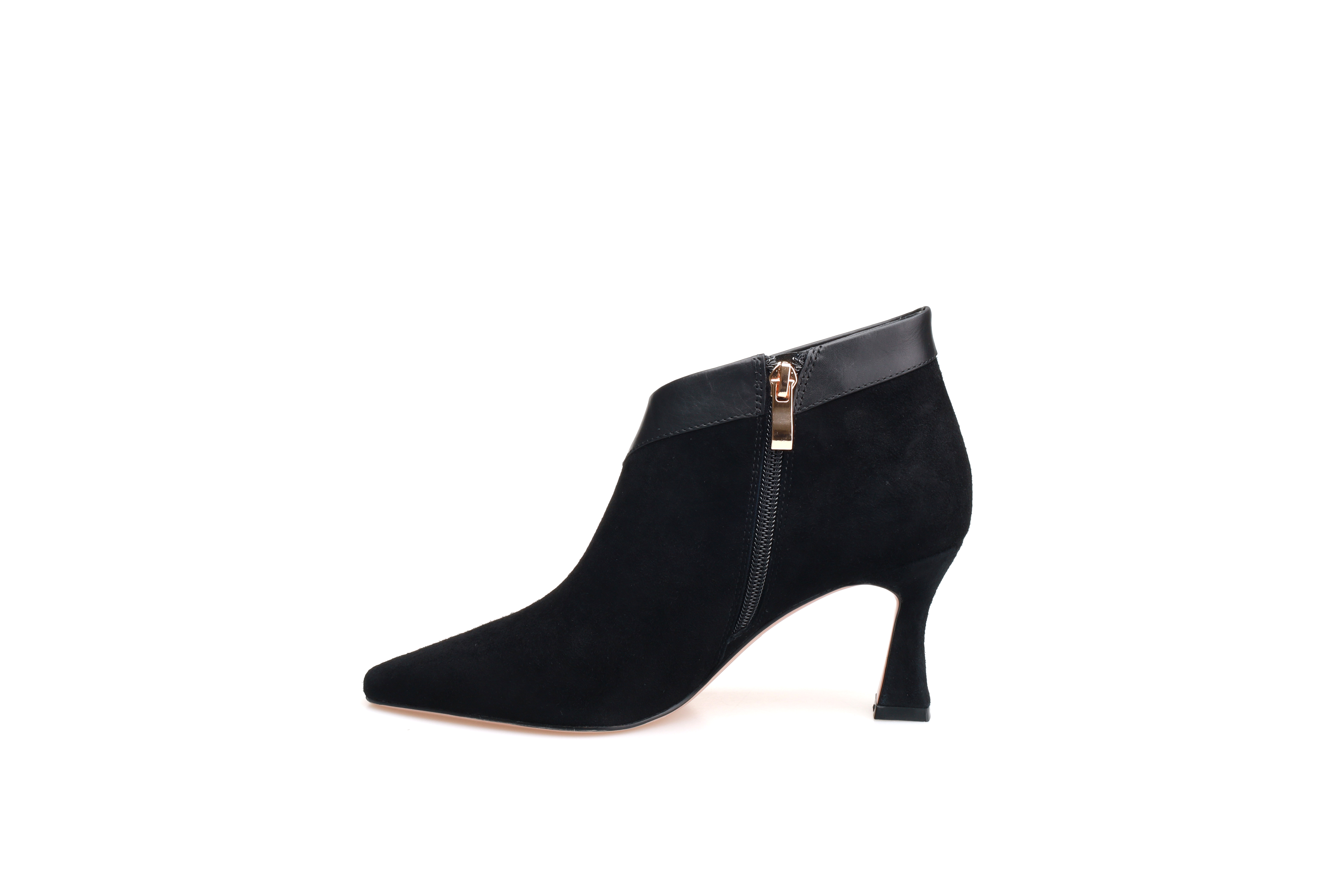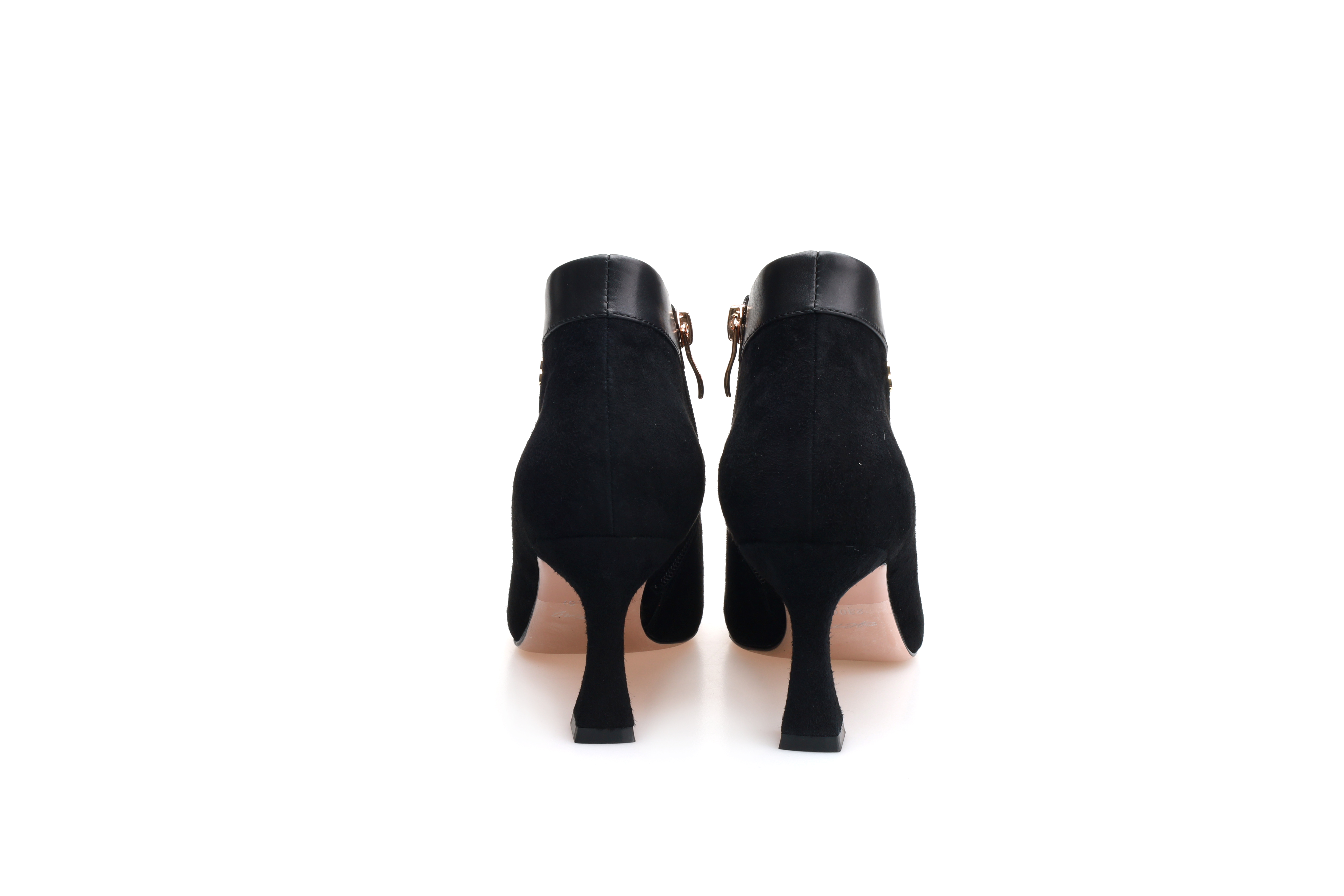 豪麟名鞋迪嘉女鞋短靴羊反绒面革DJELA52WN023黑色