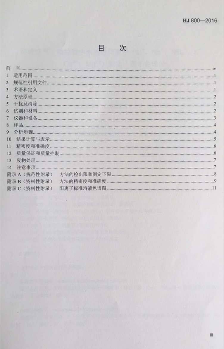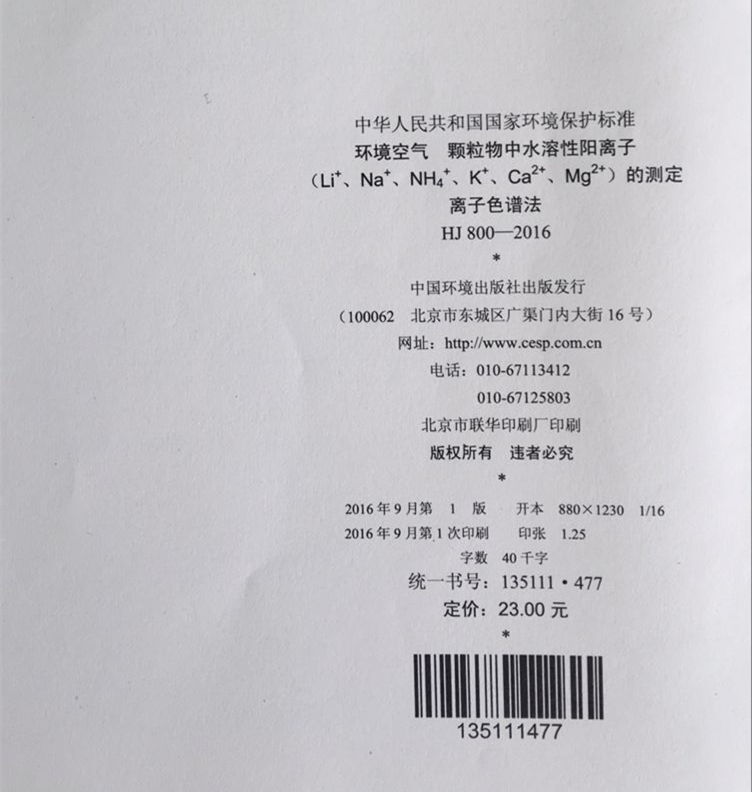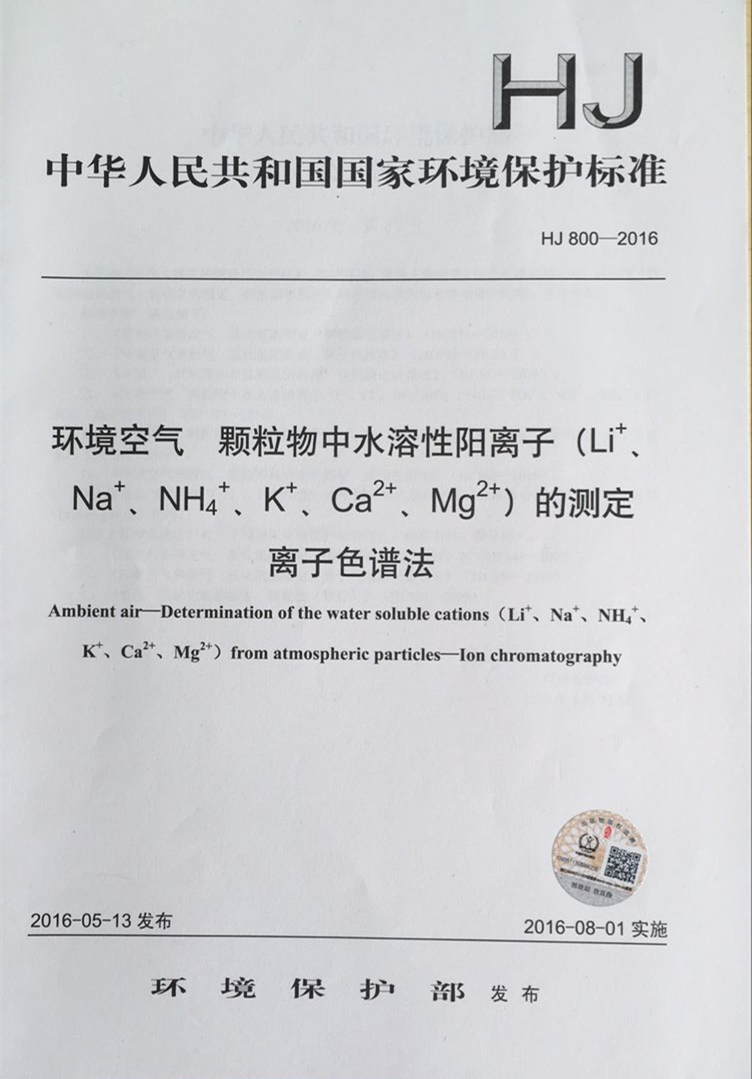 HJ800-2016环境空气颗粒物中水溶性阳离子的测定离子色谱法 国家标准 国标 GB 环境保护 135111477