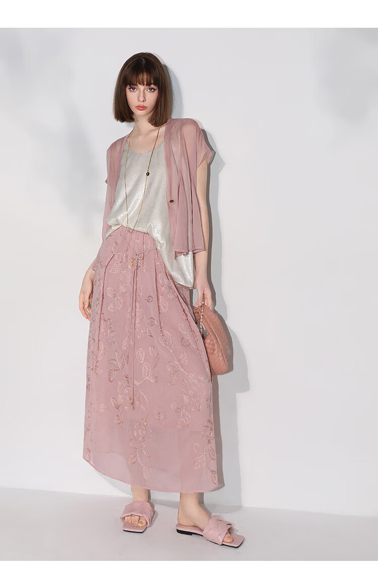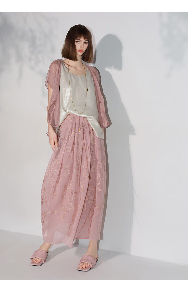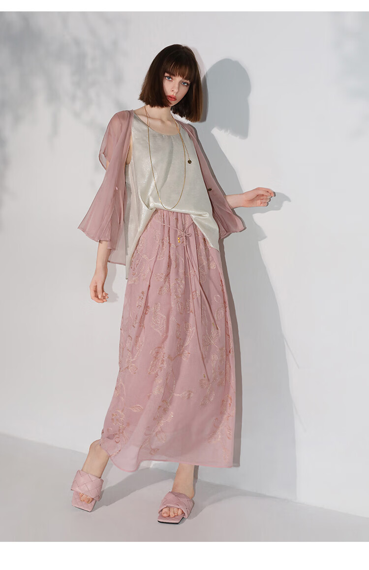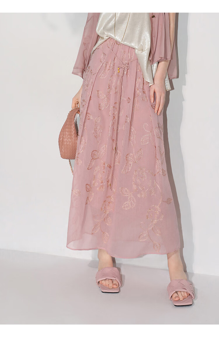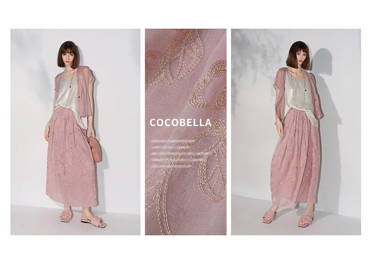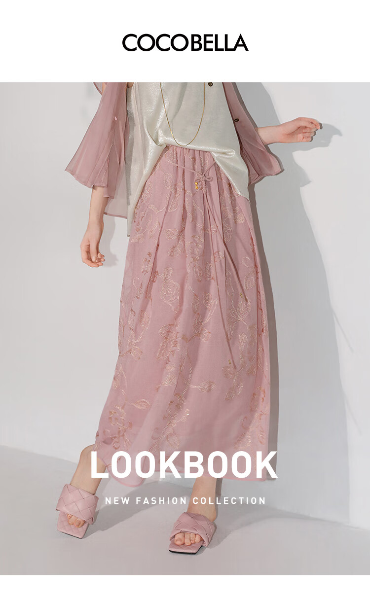 COCOBELLA奢感金葱刺绣半身裙夏气质通勤肌理感长裙HS0033B