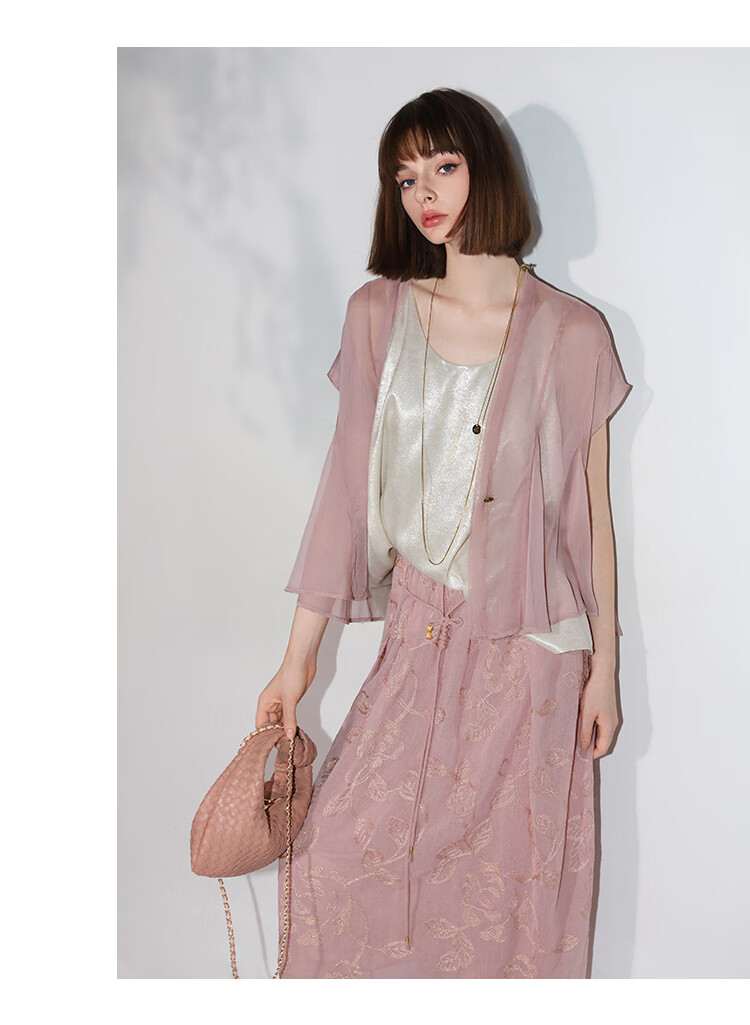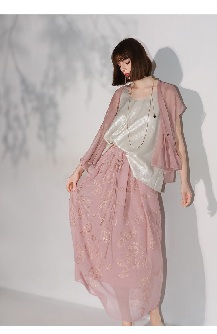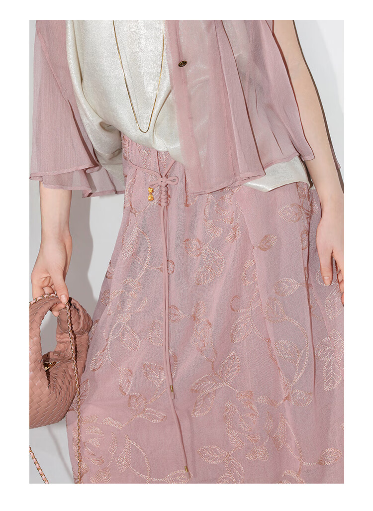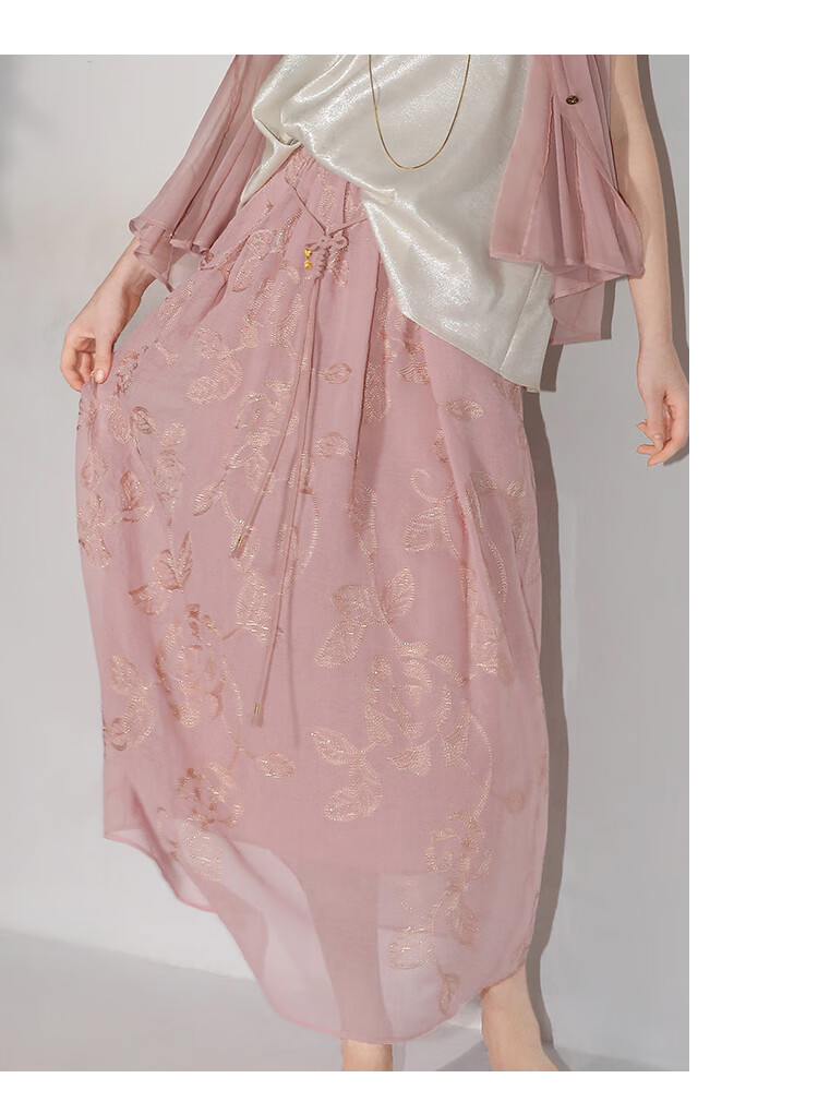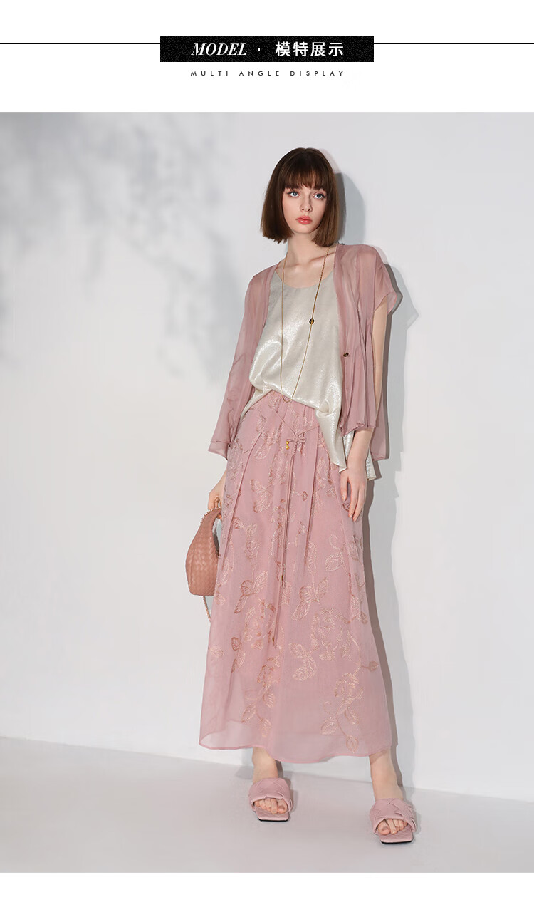 COCOBELLA奢感金葱刺绣半身裙夏气质通勤肌理感长裙HS0033B