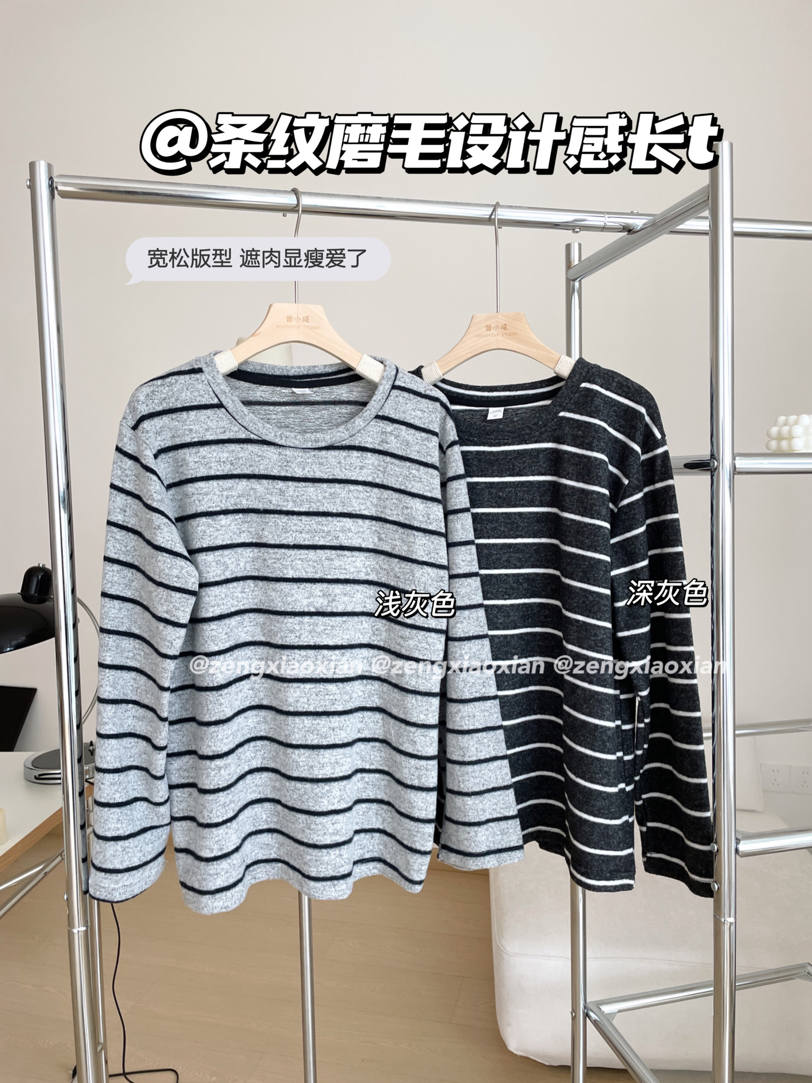 <曾小咸推荐> 条纹磨毛长袖T 日常109/件 活动价69.99/件!【预售款,预计3-15天发货】
