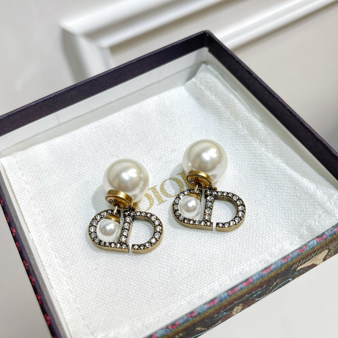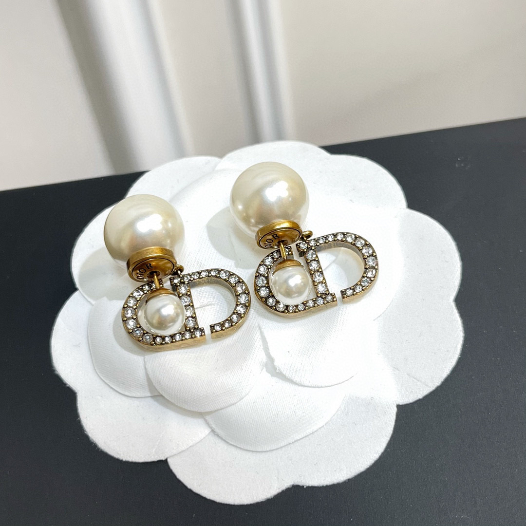 DIOR迪奥满钻CD珍珠耳钉耳环