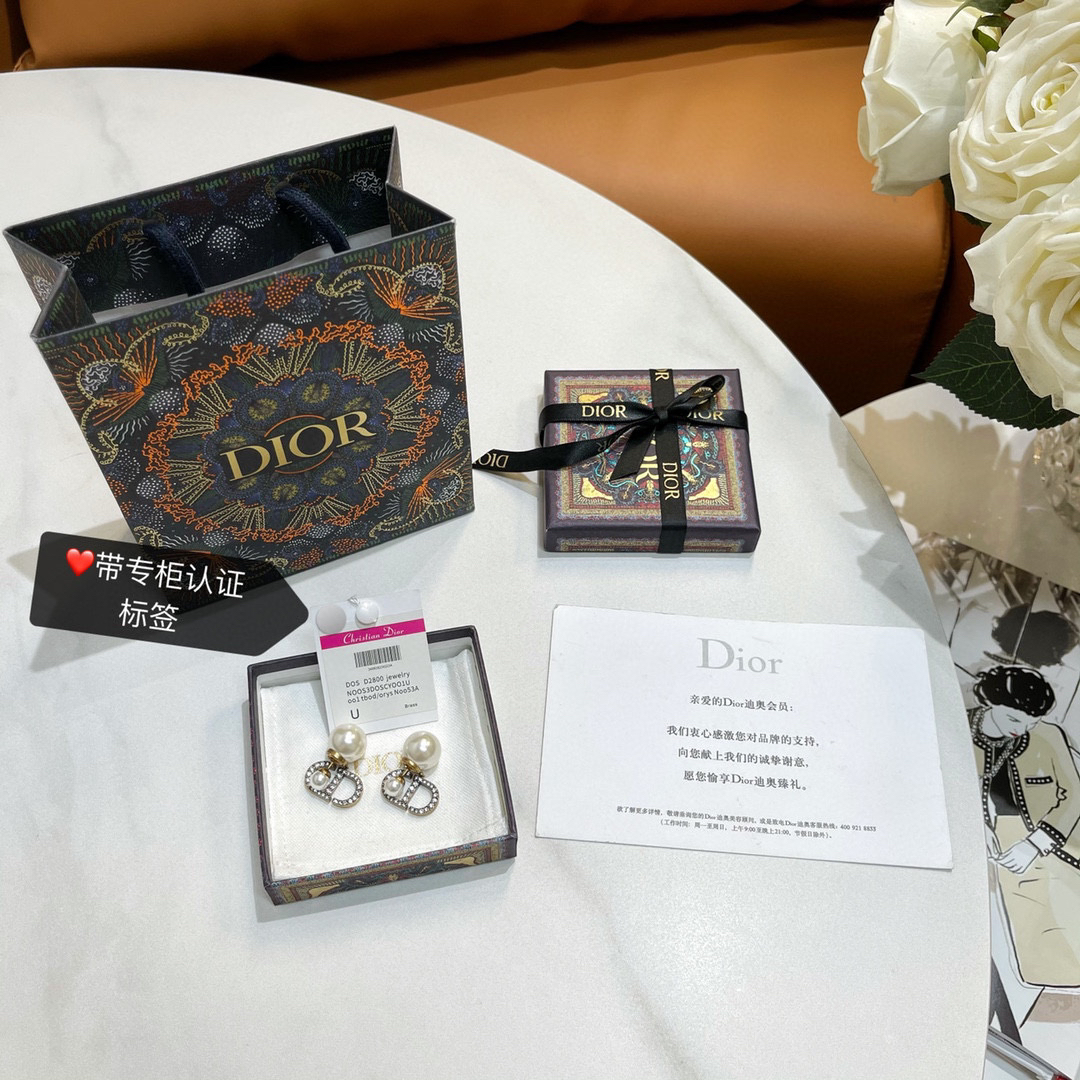 ☀新款DIOR迪奥满钻CD珍珠耳钉耳环