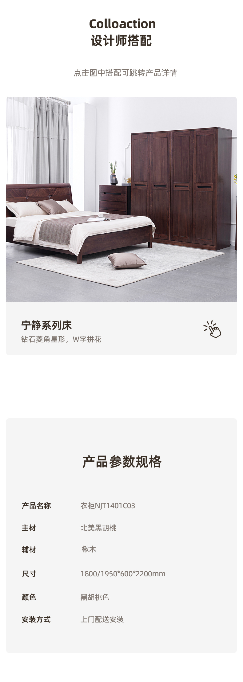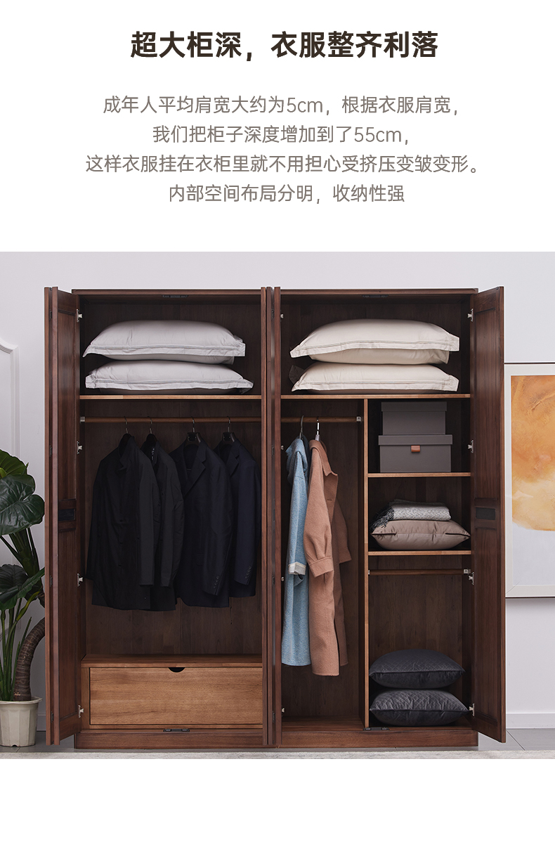 【现代实木风-NJT1401-180C03衣柜】现代实木/现代简约/卧室/北美黑胡桃/实木衣柜