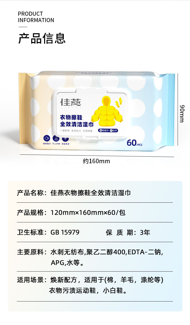 「19.9到手4大包」衣物擦鞋清洁湿巾 免洗清60抽单包 便携应急免洗去污渍油渍一次性衣服干洗居家日用
