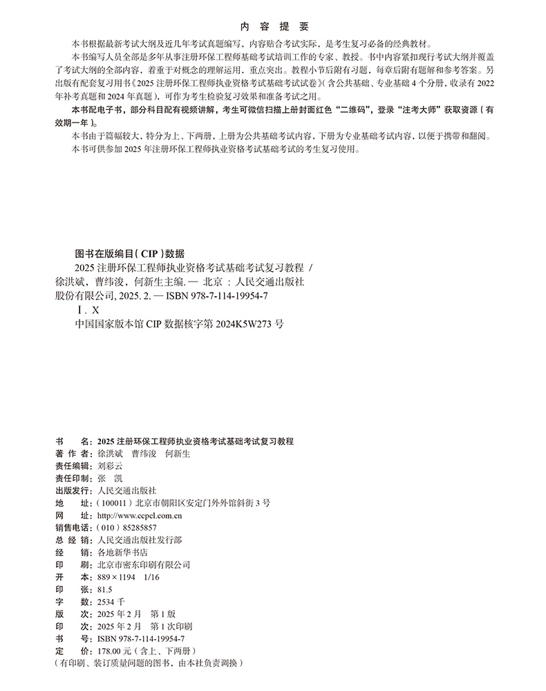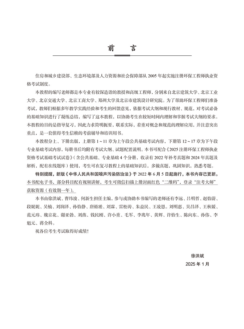 书名:2025注册环保工程师执业资格考试基础考试复习教程