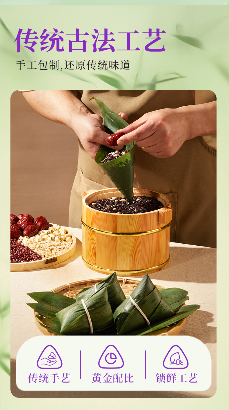 元祖 紫米八宝粽礼盒端午粽子礼盒元祖龙粽
