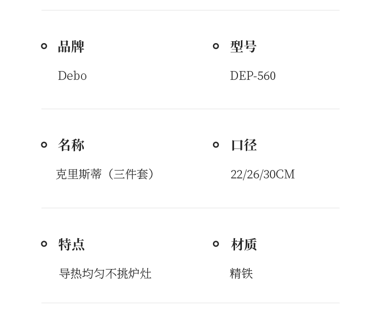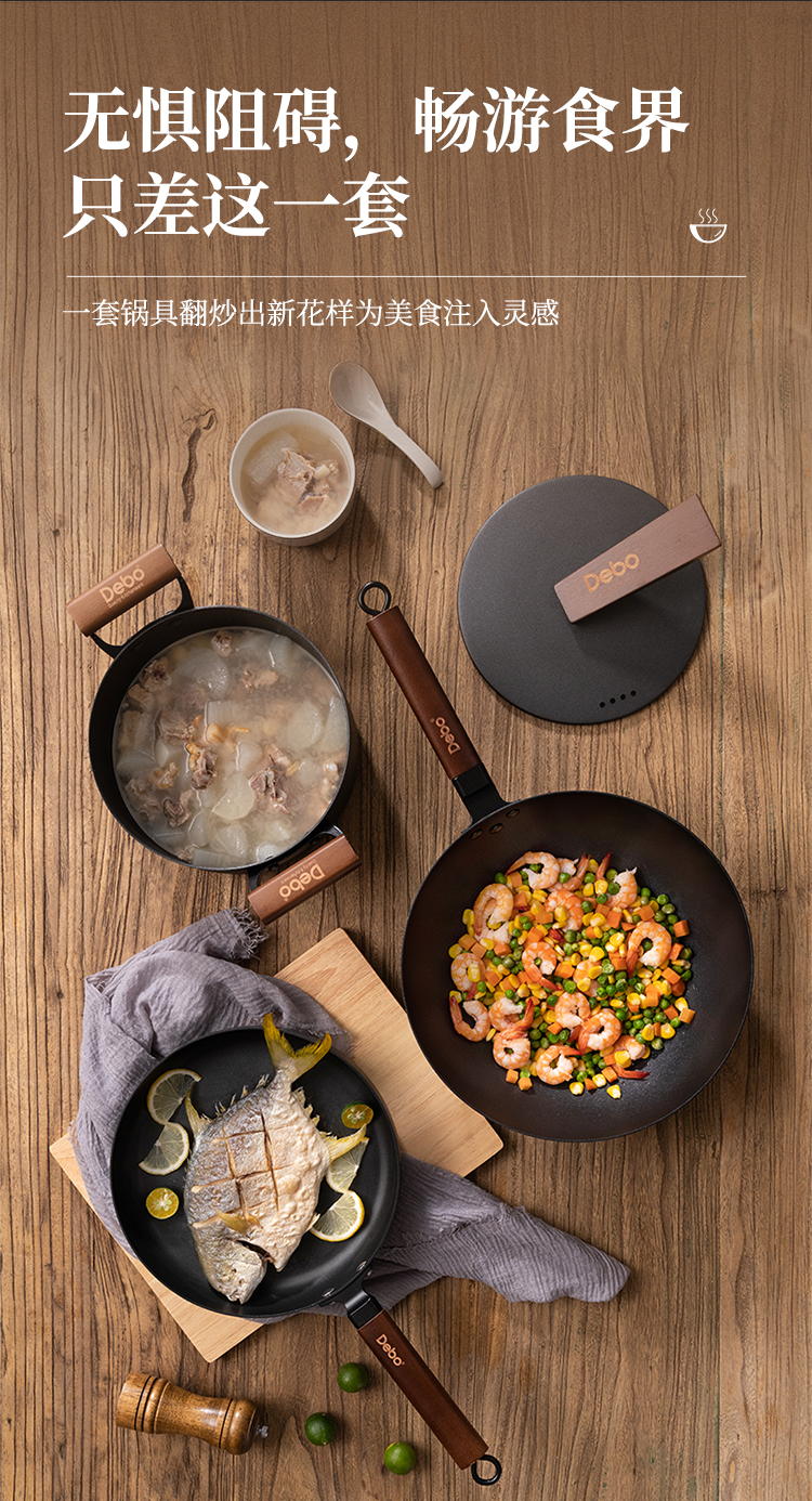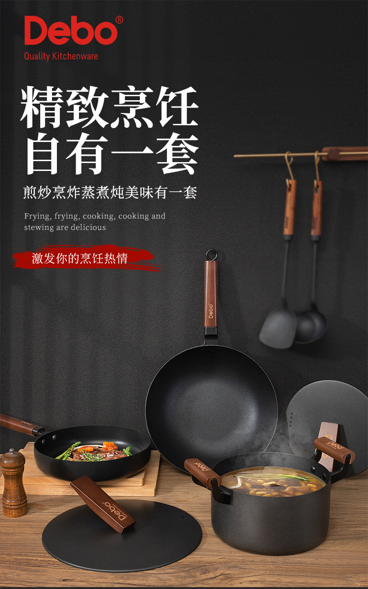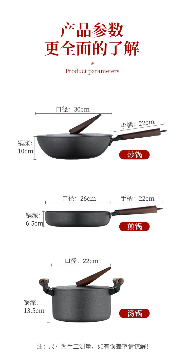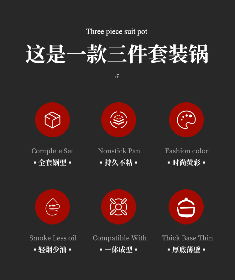 配置:汤锅身*1、汤锅盖1、炒锅身*1、煎锅身*1、炒锅盖*1