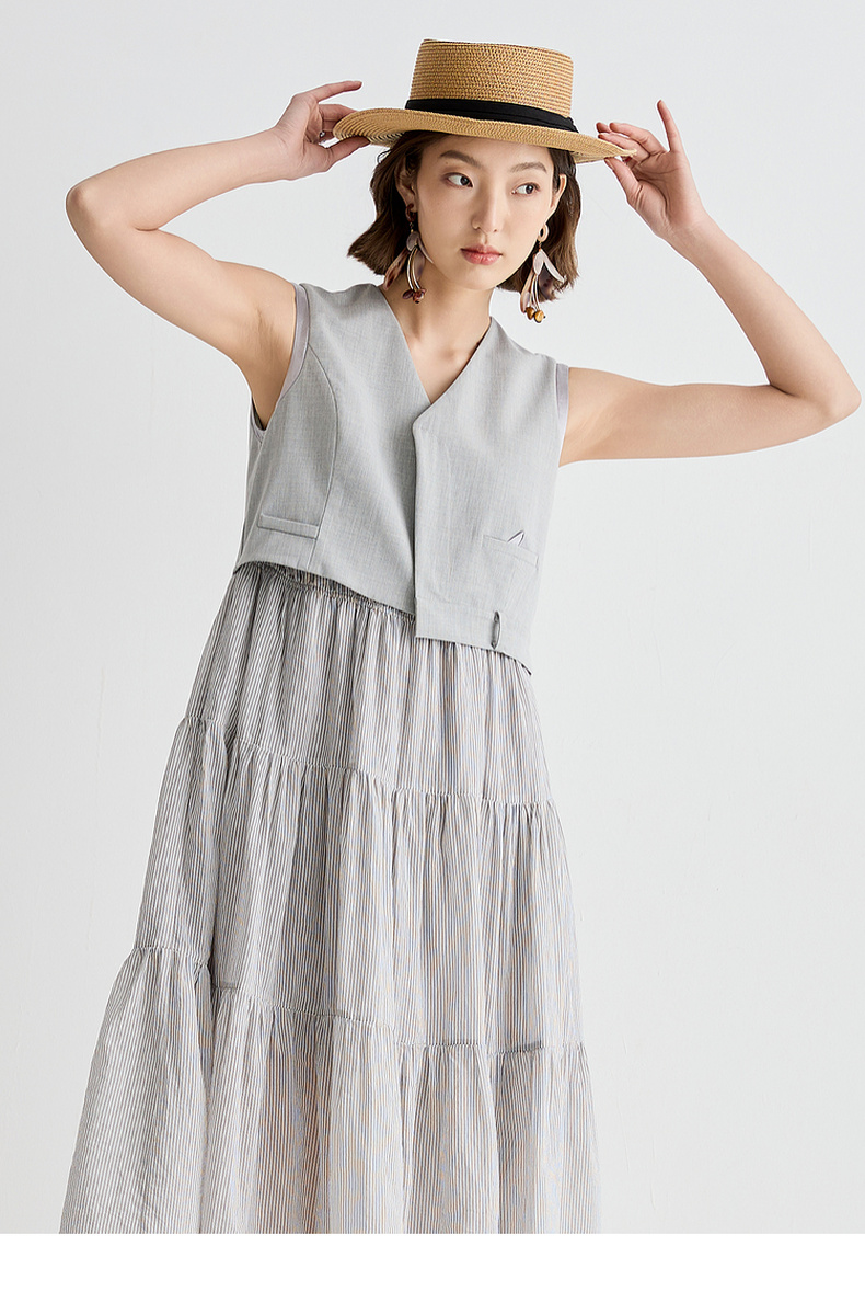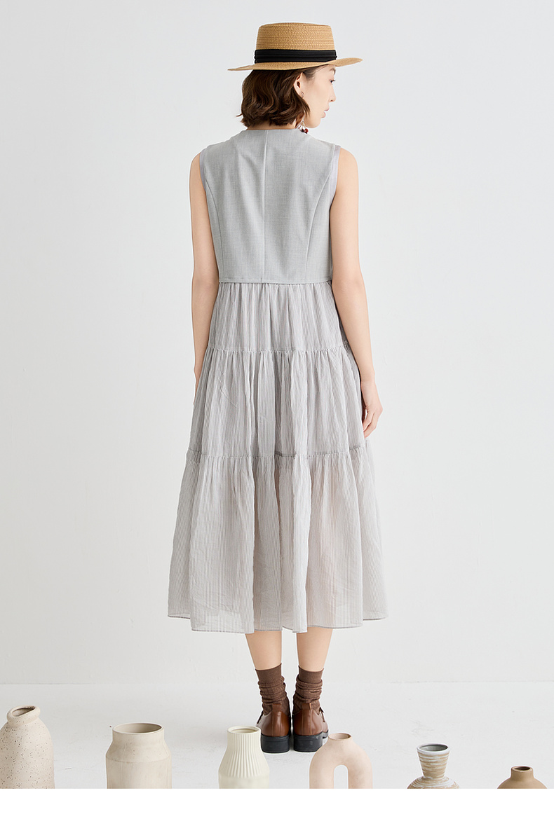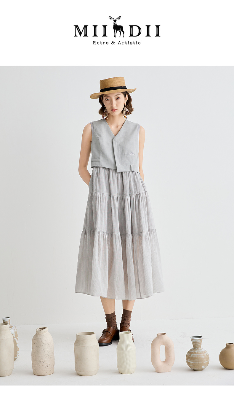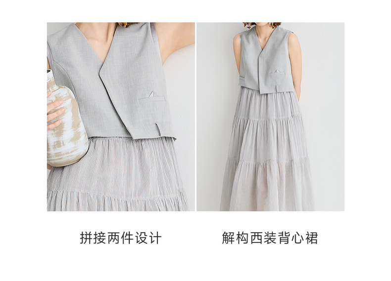 谜底连衣裙无袖女2025夏新品复古风通勤修身西装背心裙252ML0562