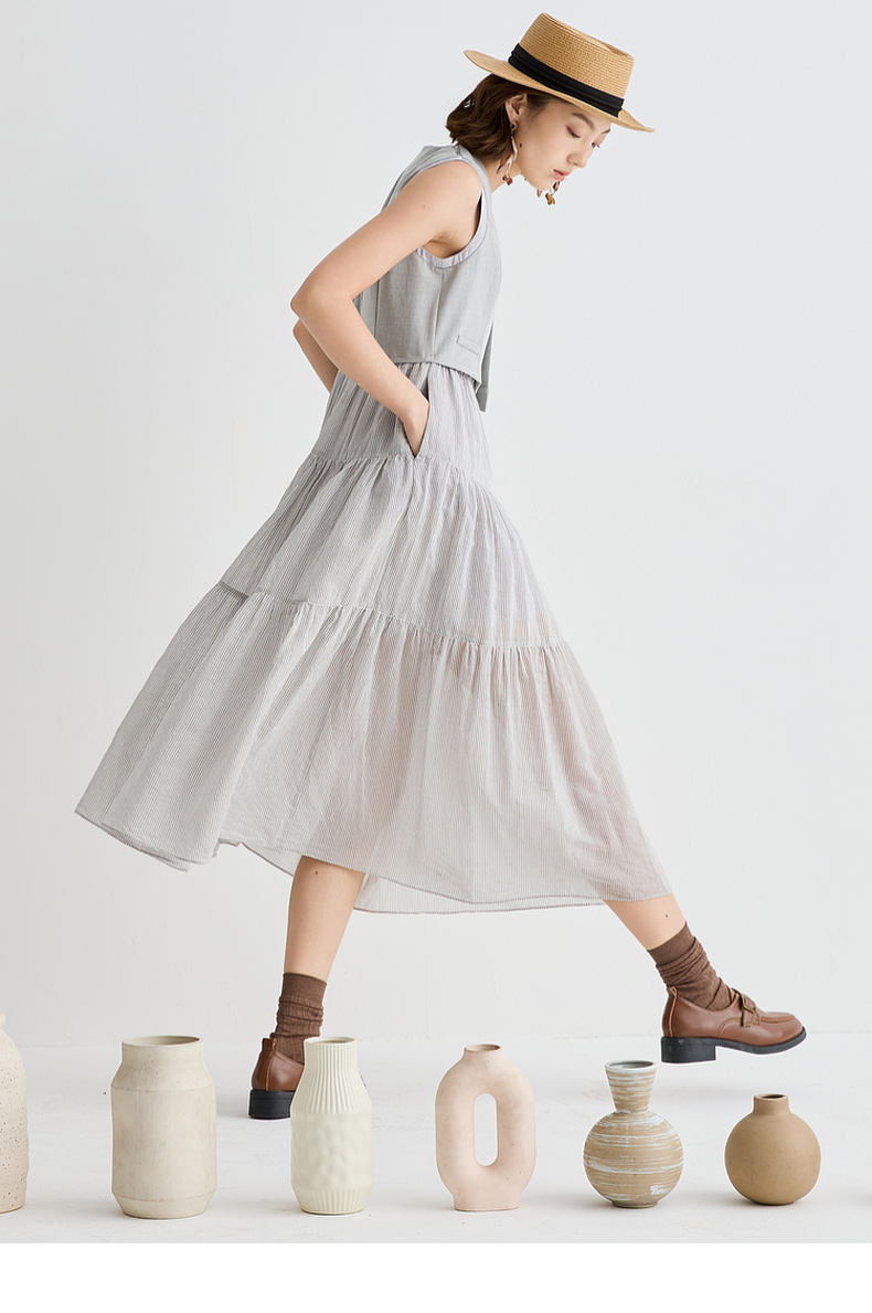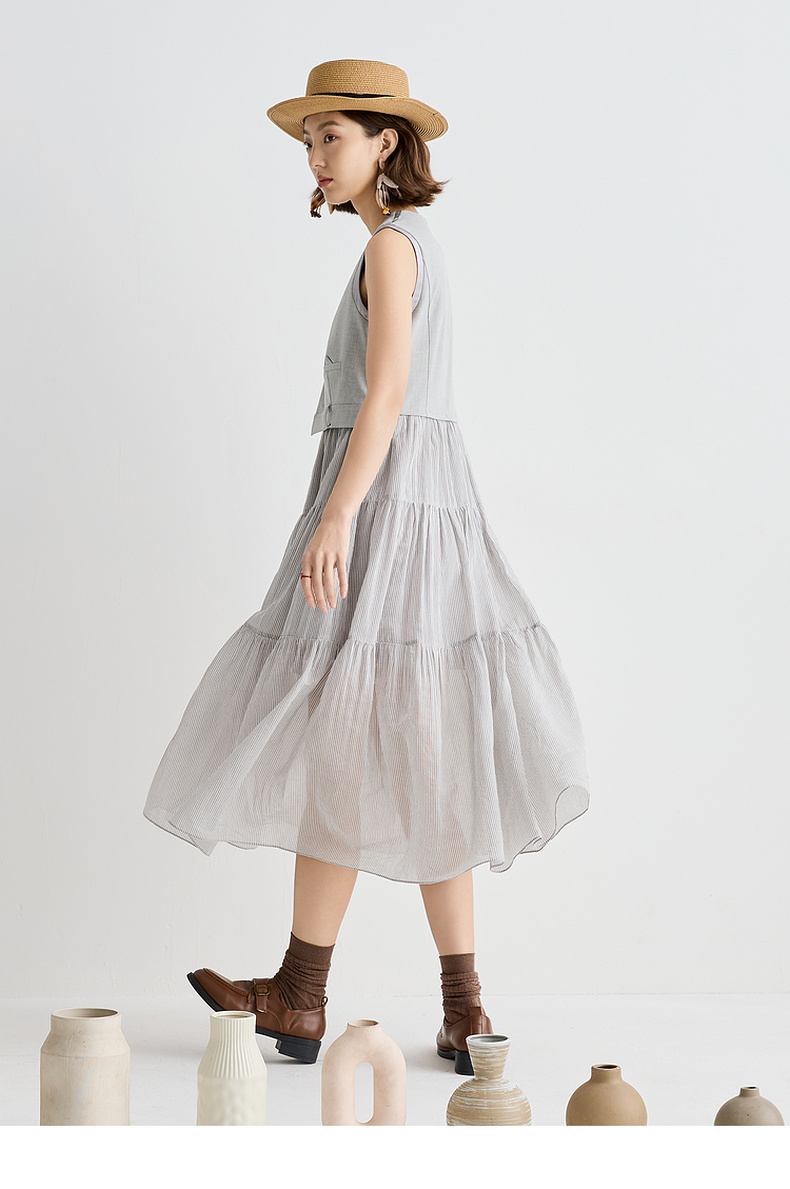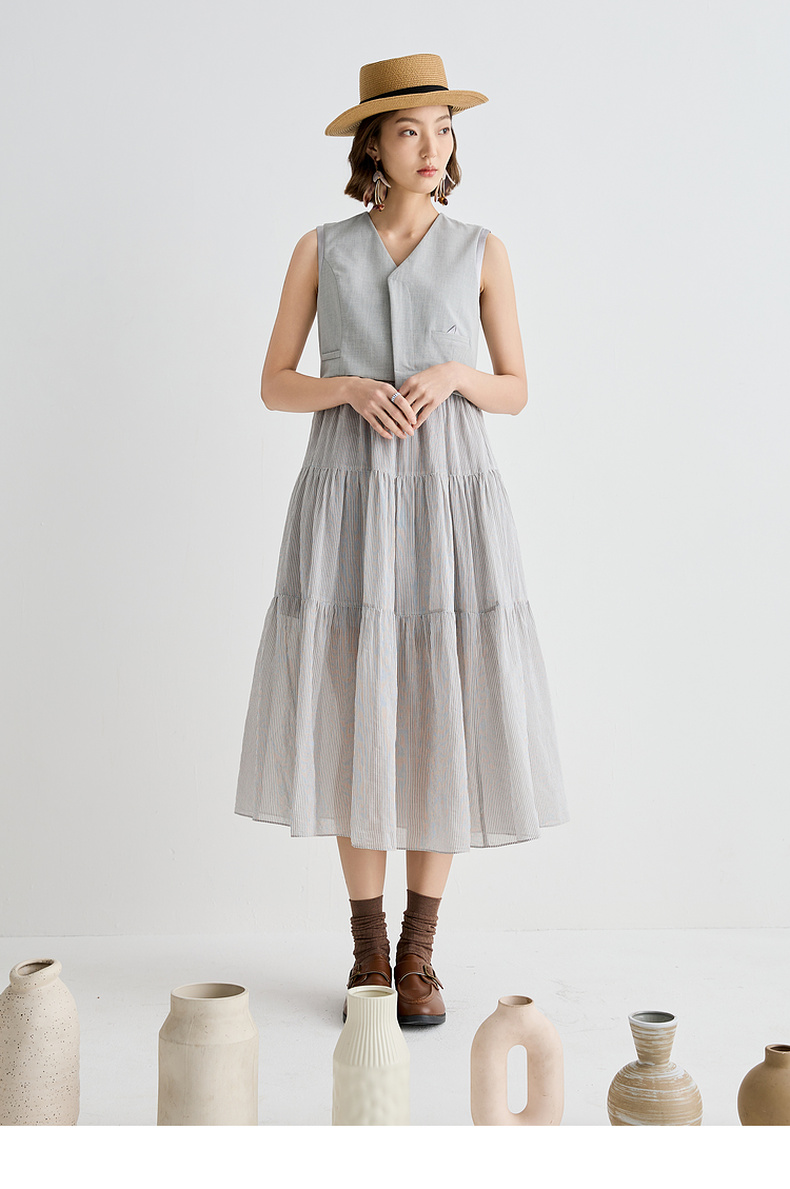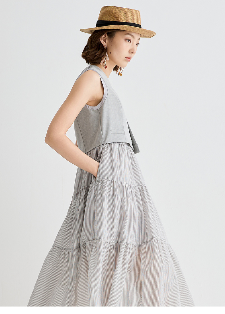 谜底连衣裙无袖女2025夏新品复古风通勤修身西装背心裙252ML0562