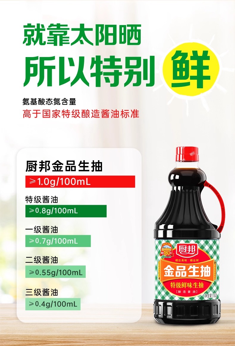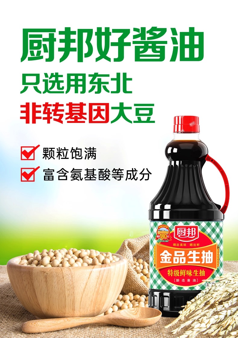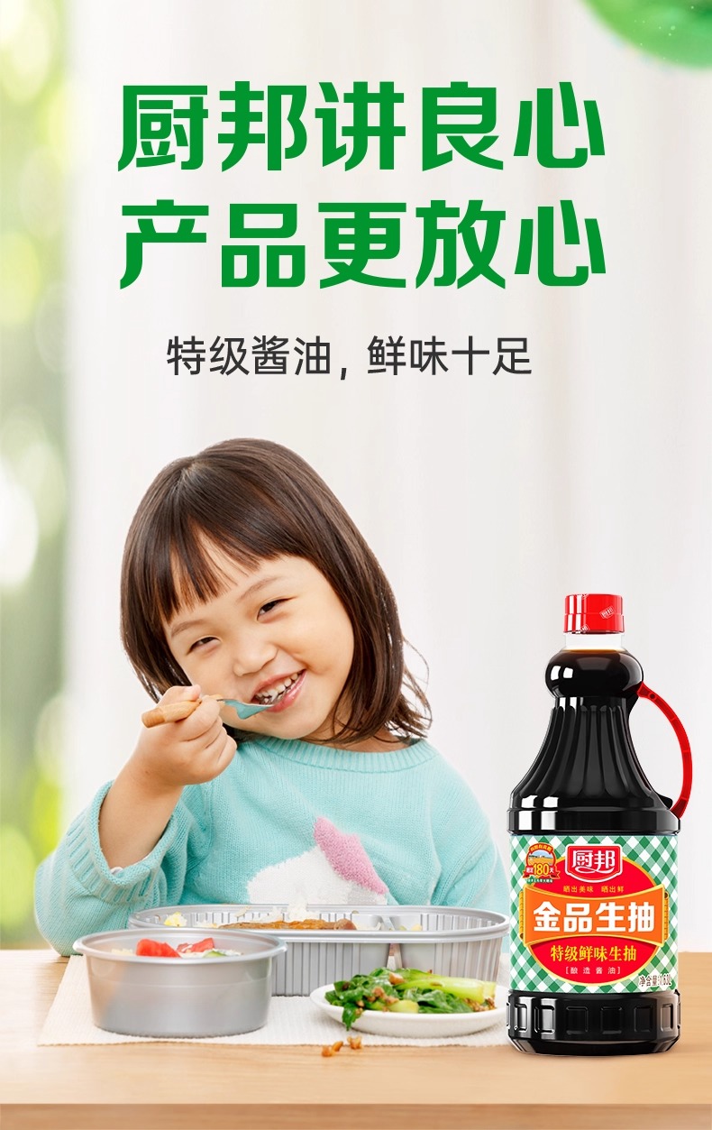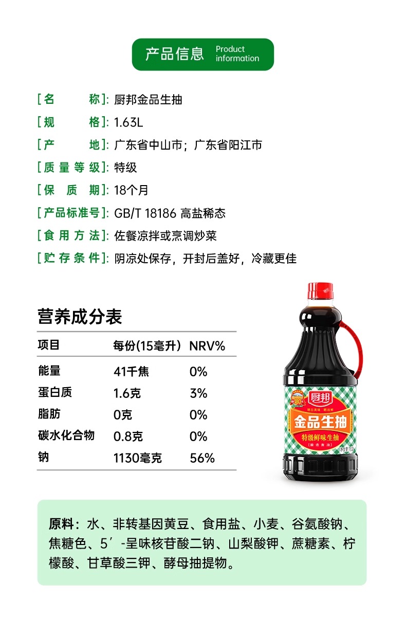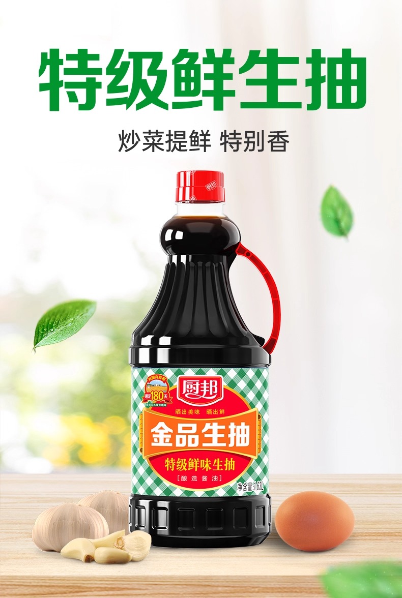 厨邦金品生抽1.63L大瓶实惠装家用酿造酱油酱香浓郁炒菜点蘸调味LY