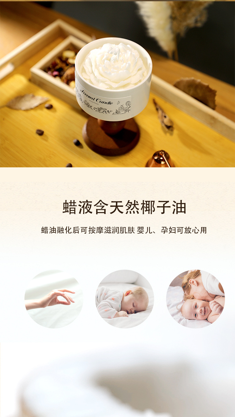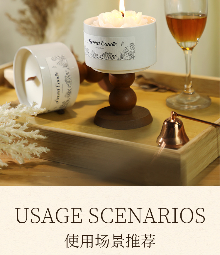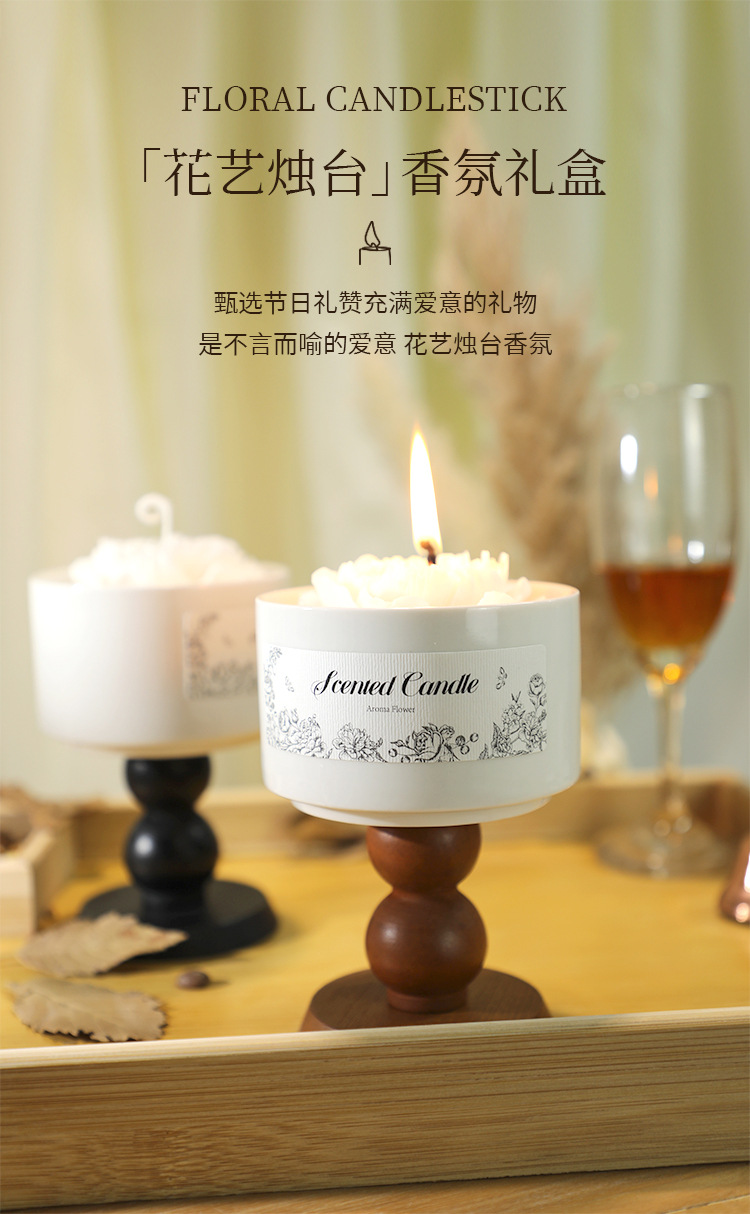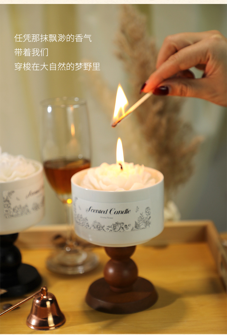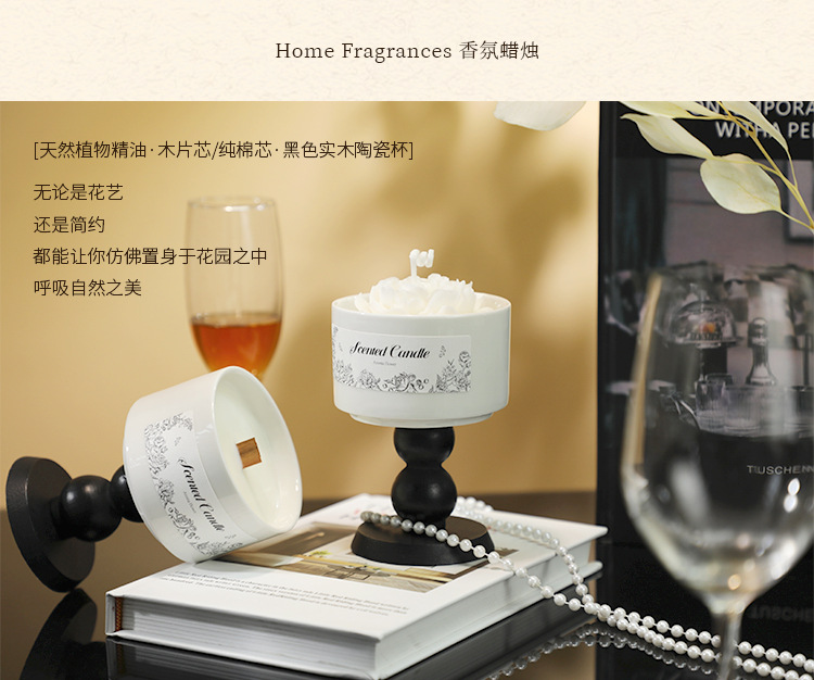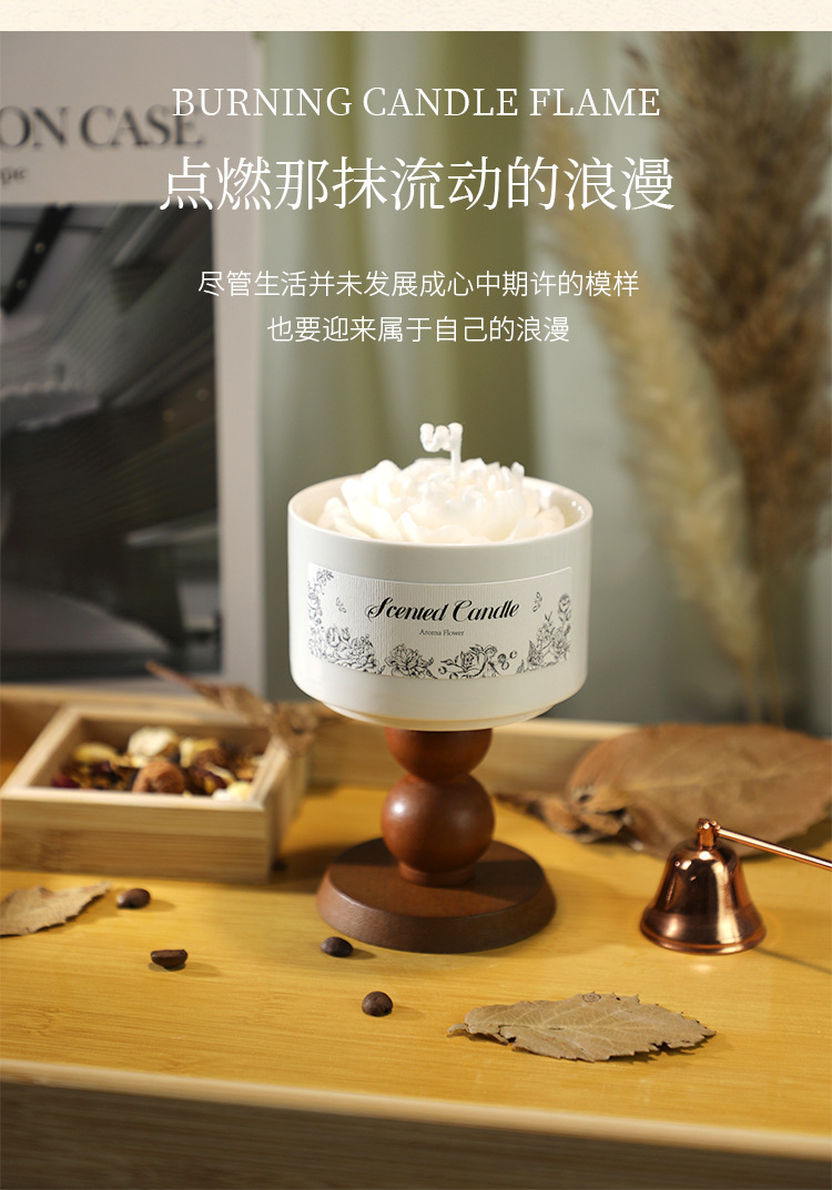 创意低温山茶花香薰蜡烛花朵造型香味蜡烛礼盒陶瓷实木结合杯蜡跨境母亲节高级感礼品送女生闺蜜生日礼品高端香氛伴手礼蜡烛工厂定制