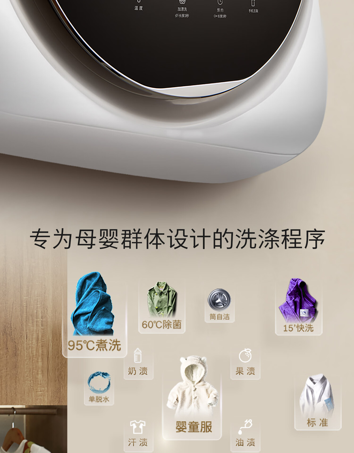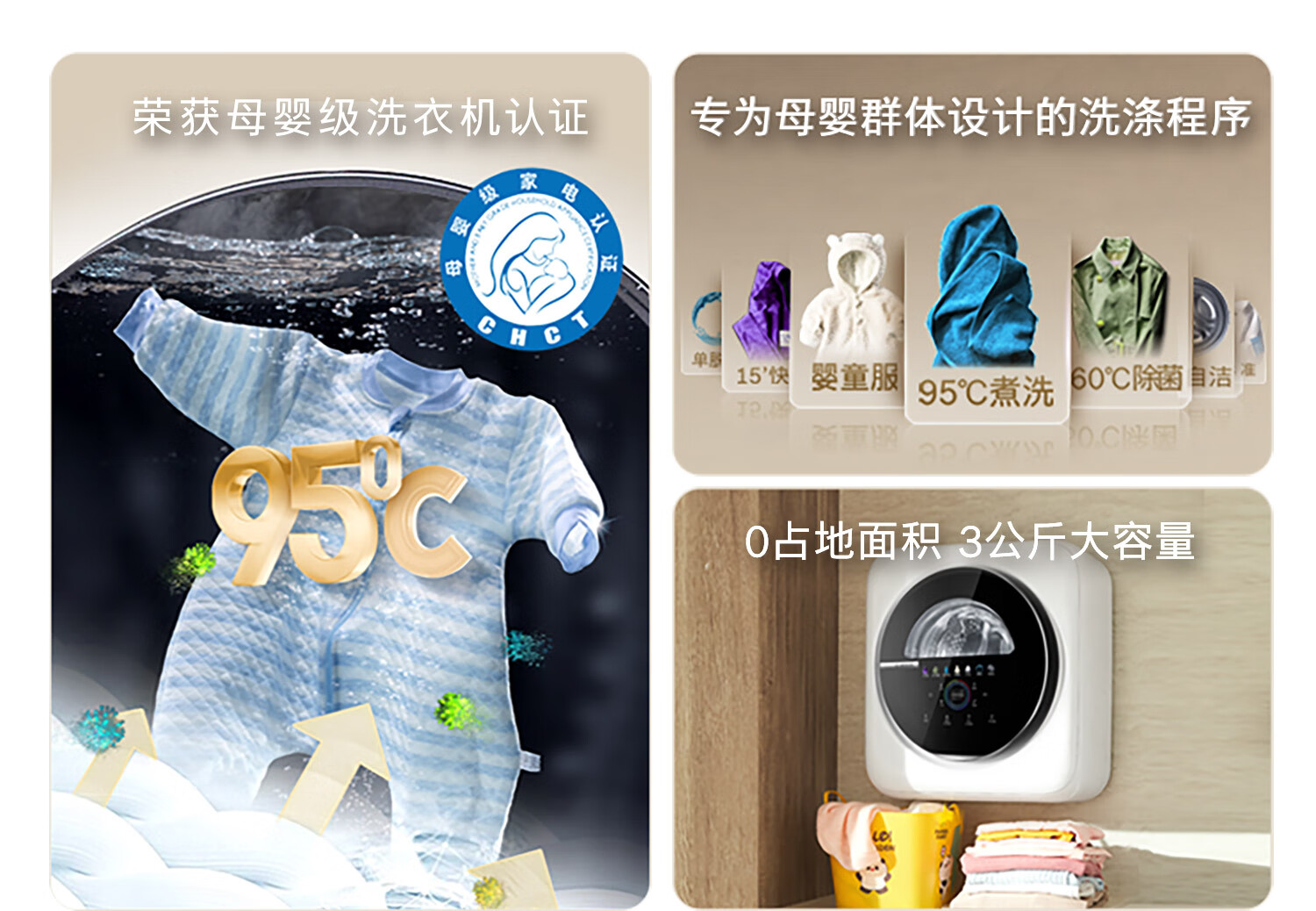 博世(BOSCH)3KG迷你壁挂洗衣机 小型全自动滚筒 婴幼儿童宝宝内衣内裤 95℃高温煮洗除菌 手机互联 LED触控屏 【母婴级呵护认证】WZW70AU00W