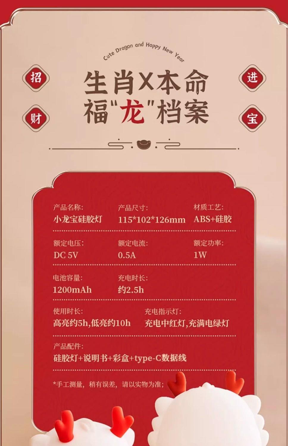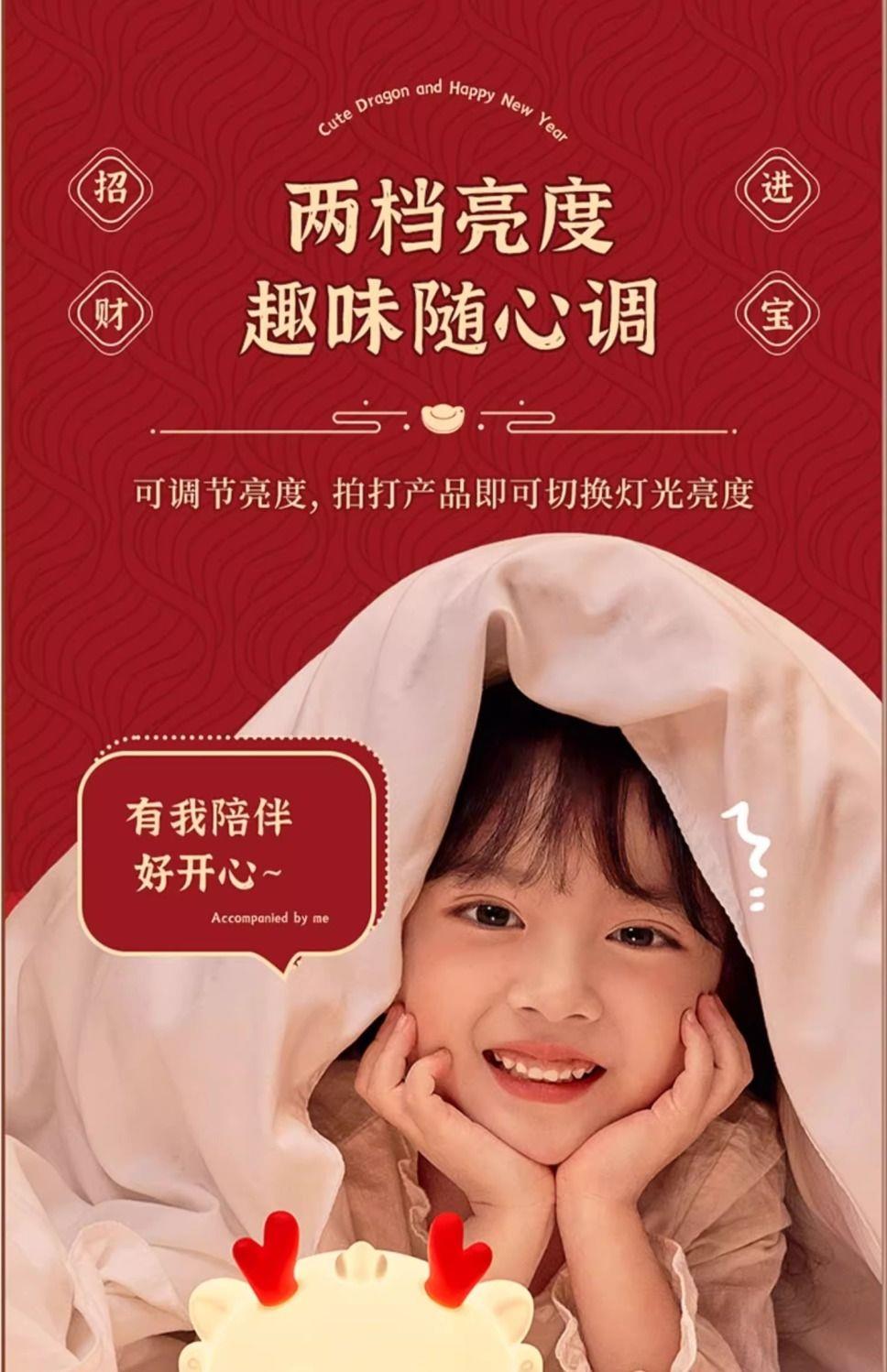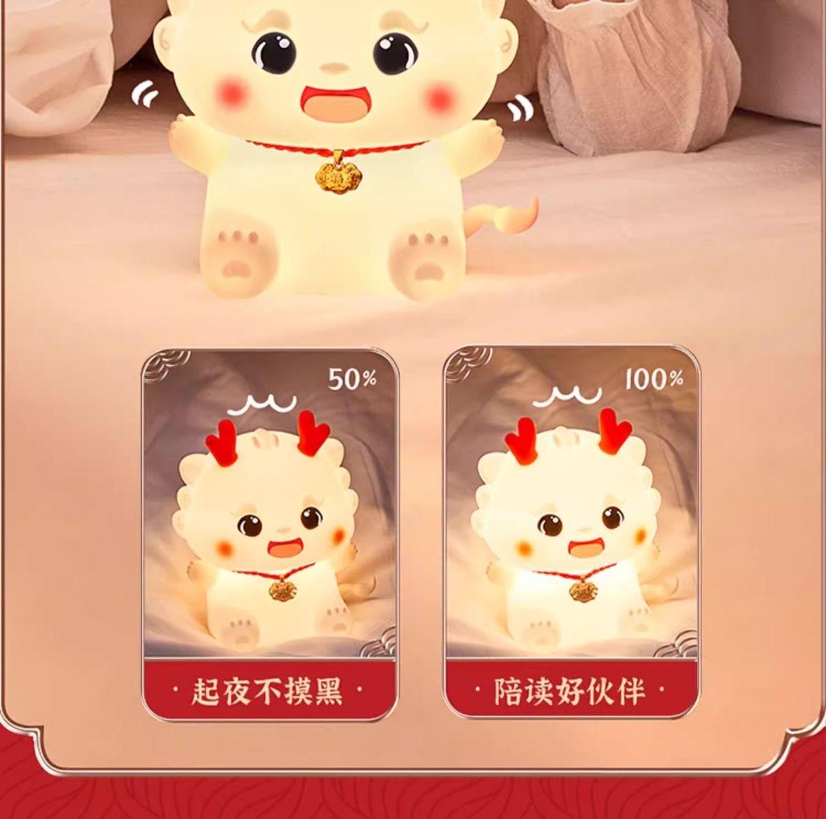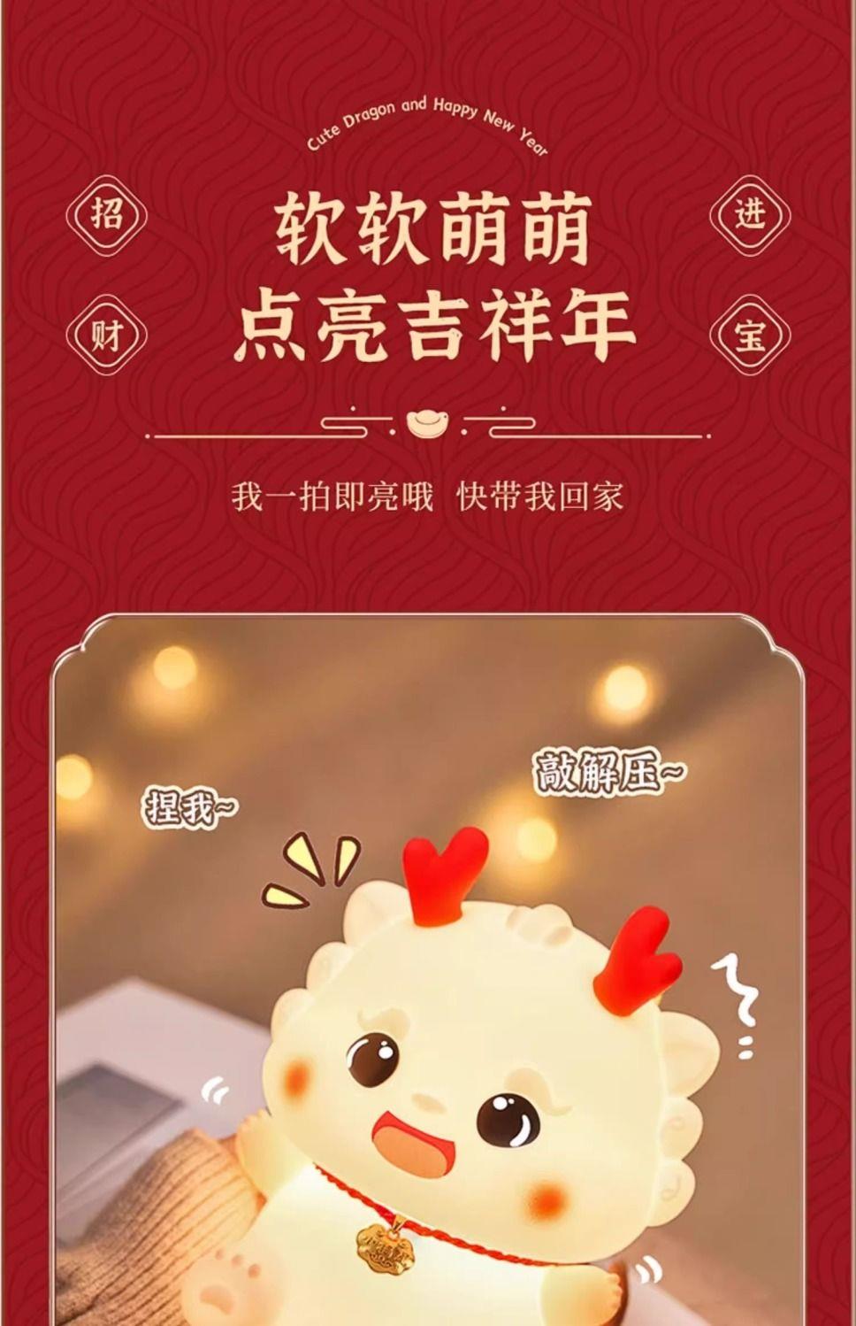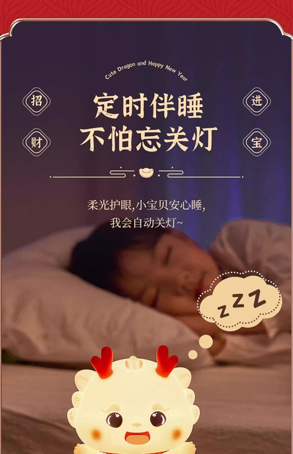 【元宵节礼物】小龙宝硅胶小夜灯卧室床头儿童拍拍台灯生日新年龙年礼物2024新款-YXJ10