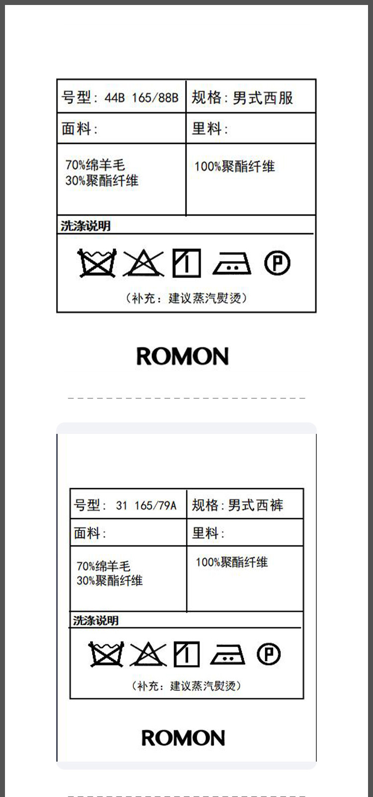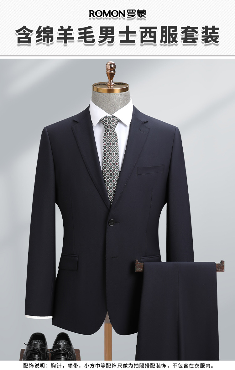 【70羊毛】罗蒙男士羊毛西装套装两件套商品质商务正装职业通勤西服套装