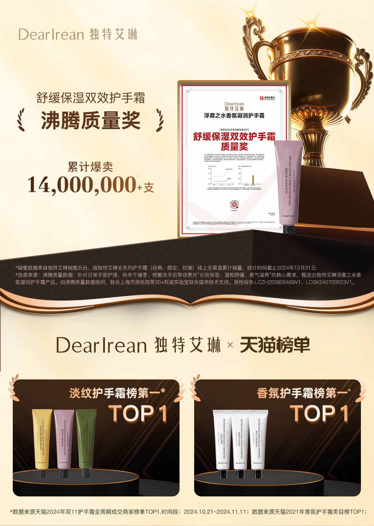 - DearIrean 独特艾琳,高定香氛生活品牌,拥有体•研究所,品牌致力于将高定香氛带入生活,同时倡导“以香之名,带给生活美好方式”的品牌理念,传递精致女性的爱、独立、自信。