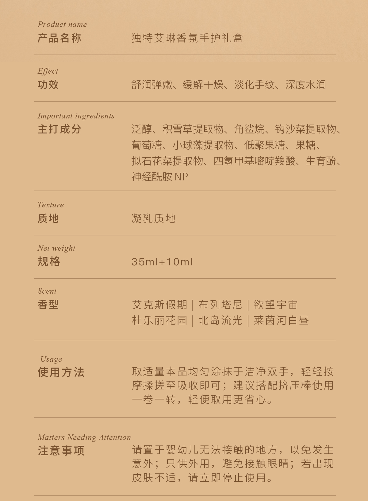 【侯明昊同款】DearIrean 独特艾琳香氛长效保湿滋润香氛手护礼盒(35ml+10ml)(官方自营)