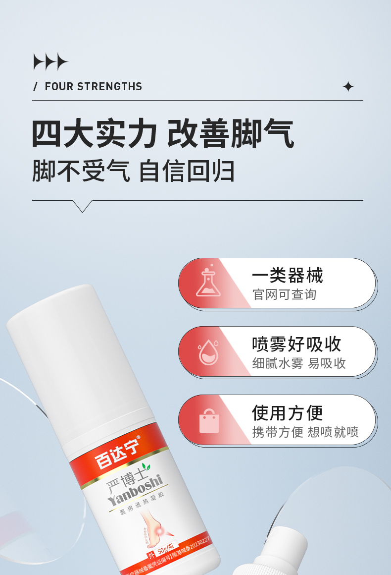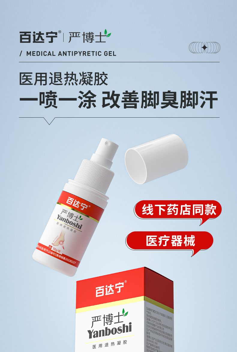 百达宁严博士脚气喷雾剂医用退热凝胶白达宁正品官方旗舰店