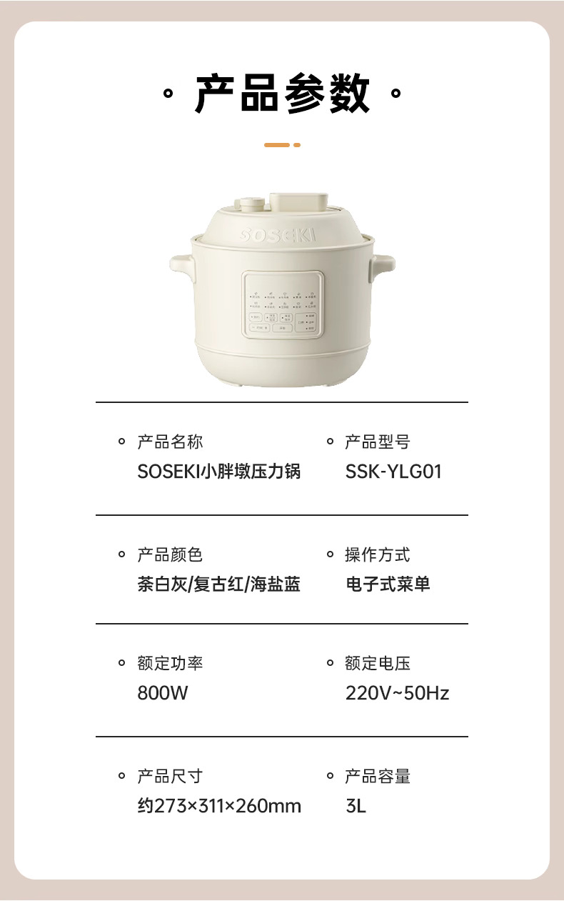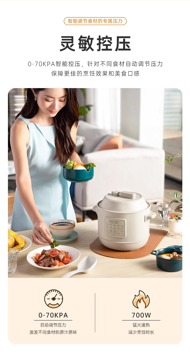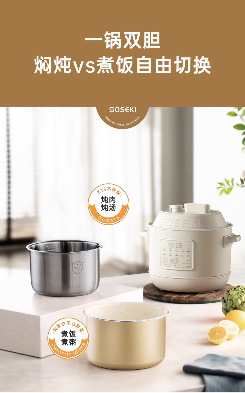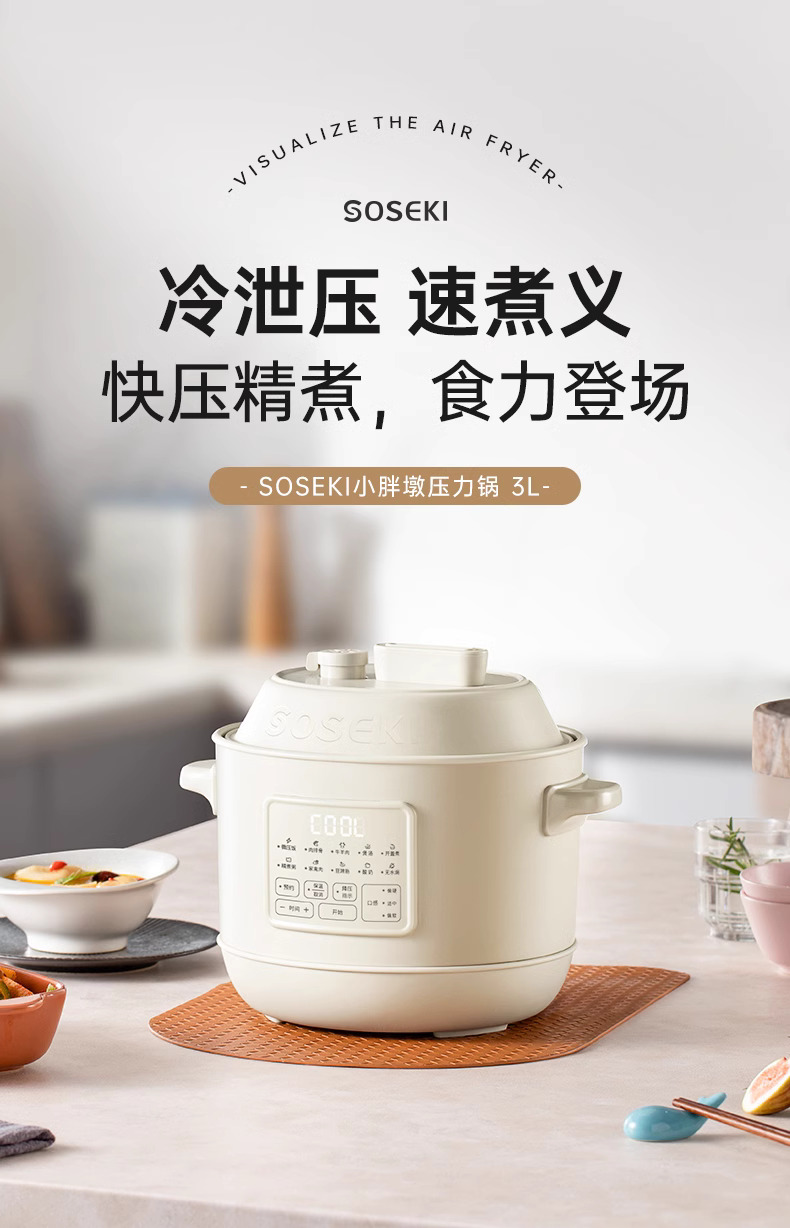 善思soseki电压力锅家用3L饭煲小型智能全自动排气多功能高压锅