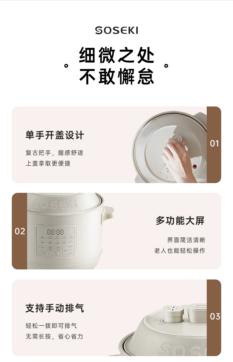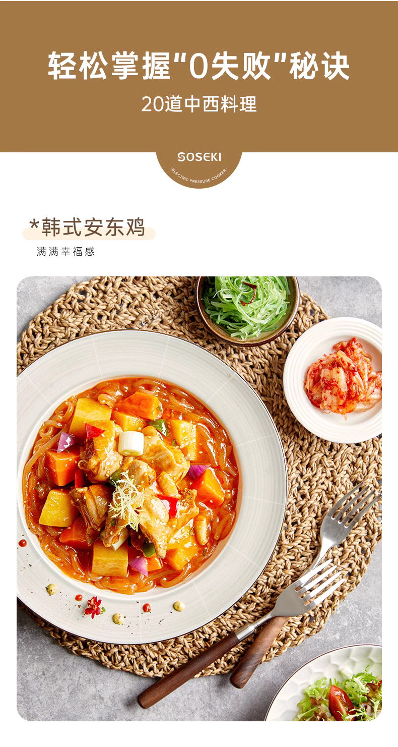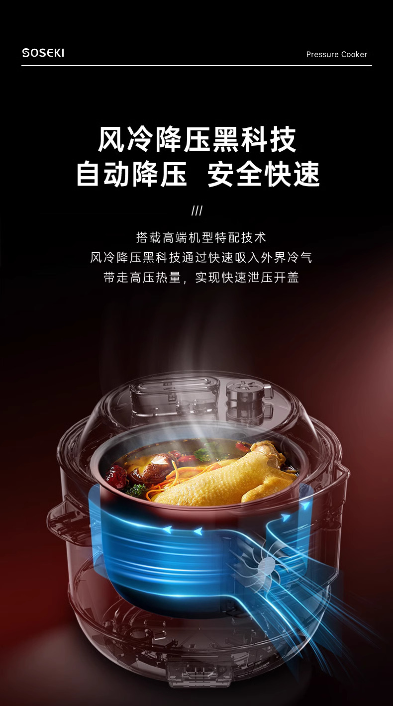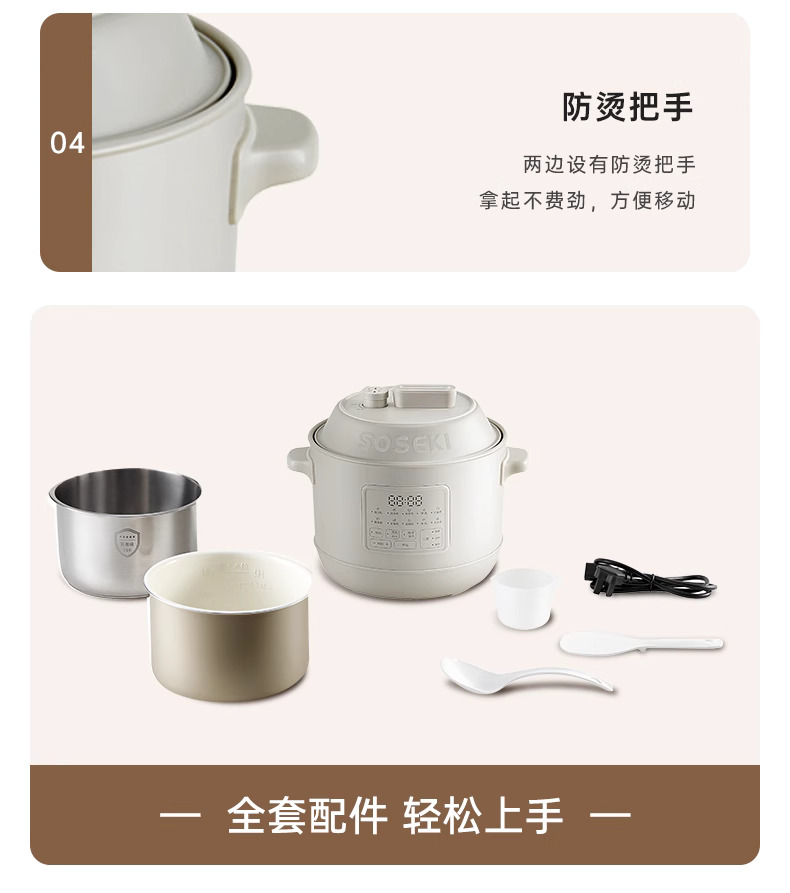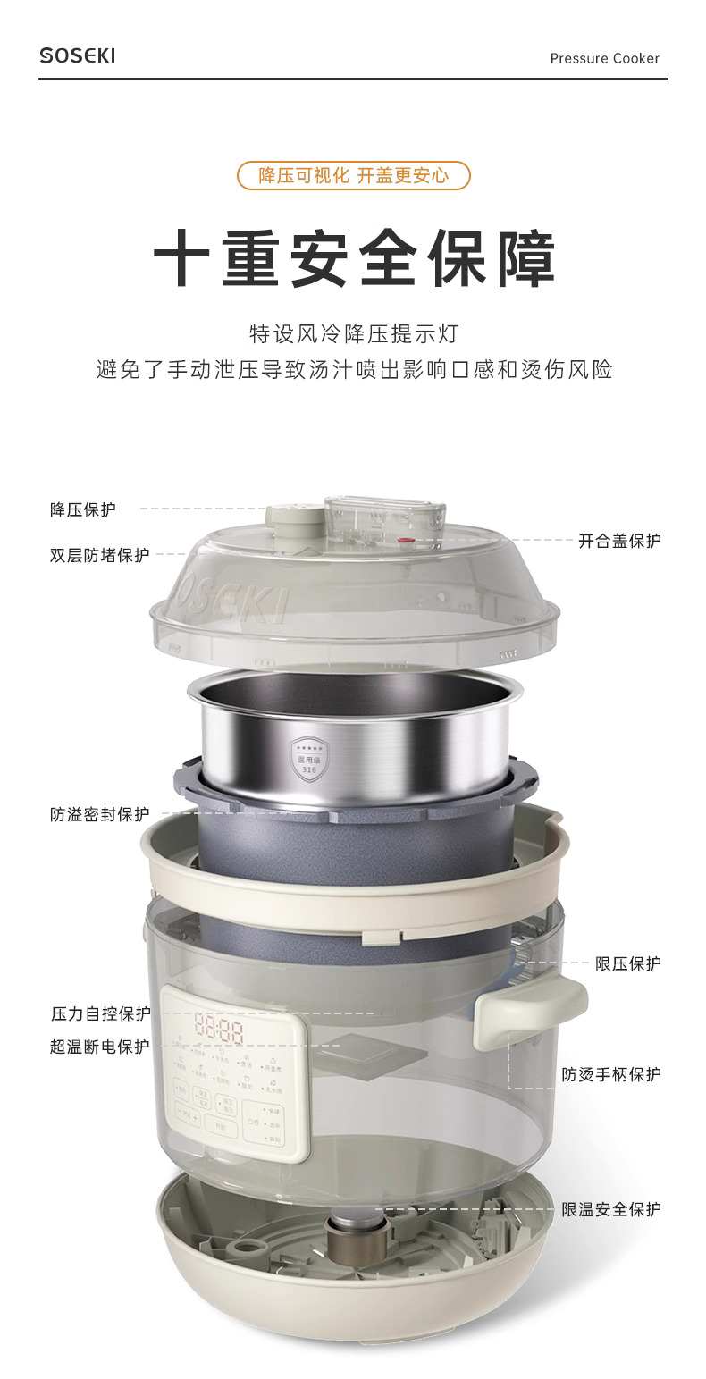 善思soseki电压力锅家用3L饭煲小型智能全自动排气多功能高压锅