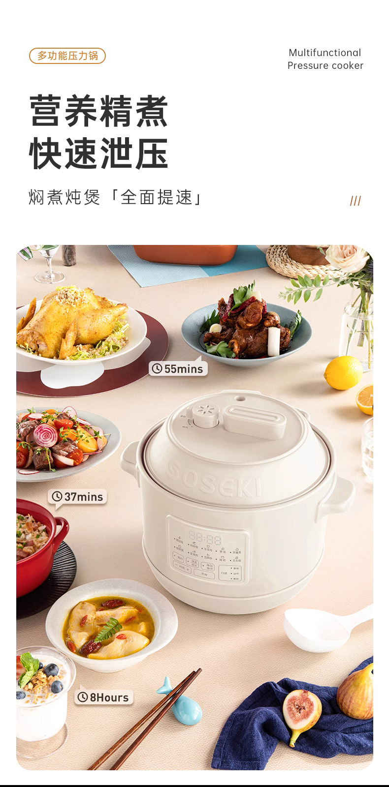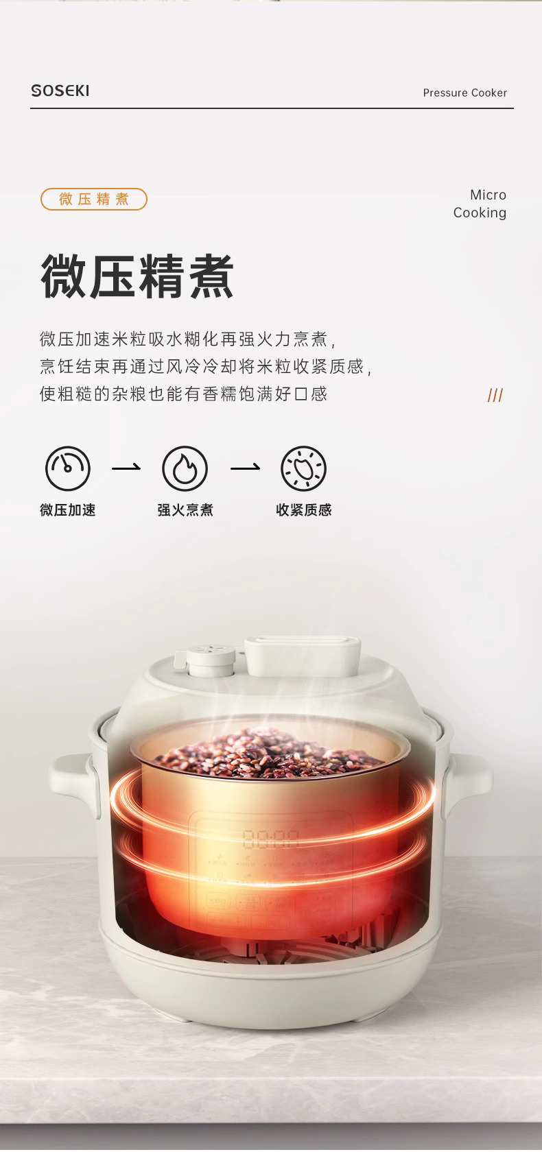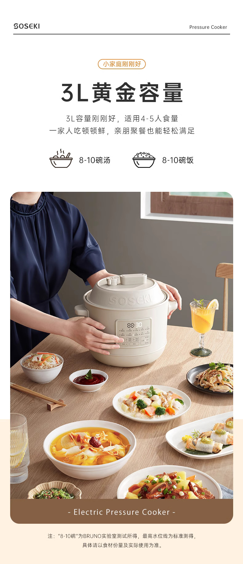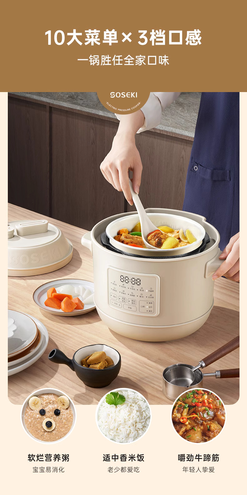 善思soseki电压力锅家用3L饭煲小型智能全自动排气多功能高压锅