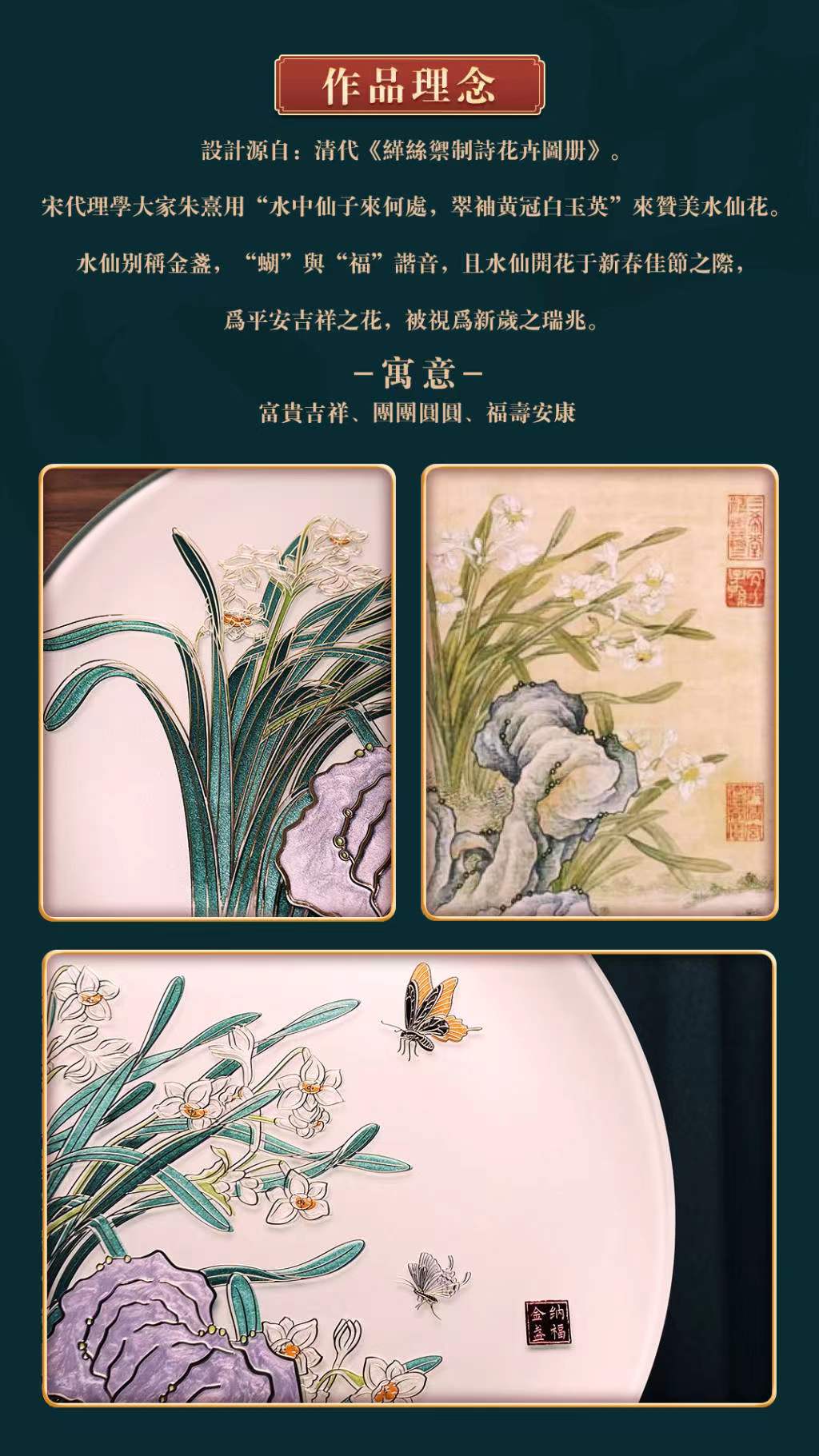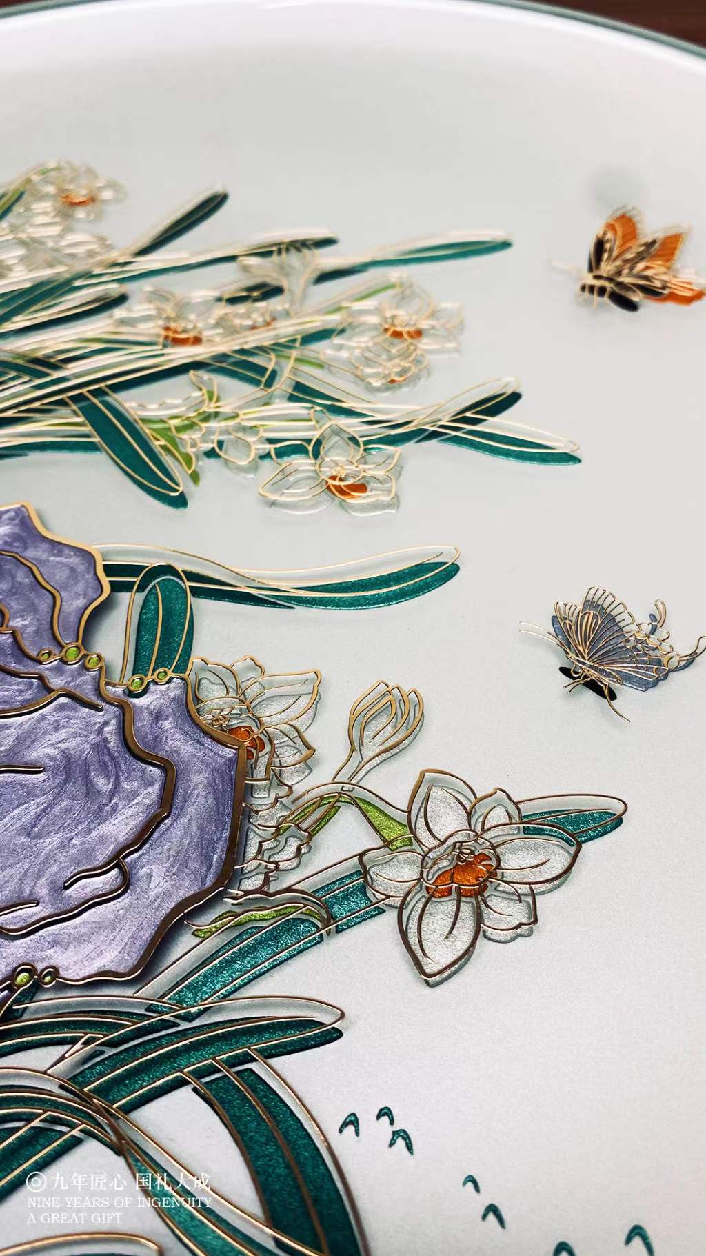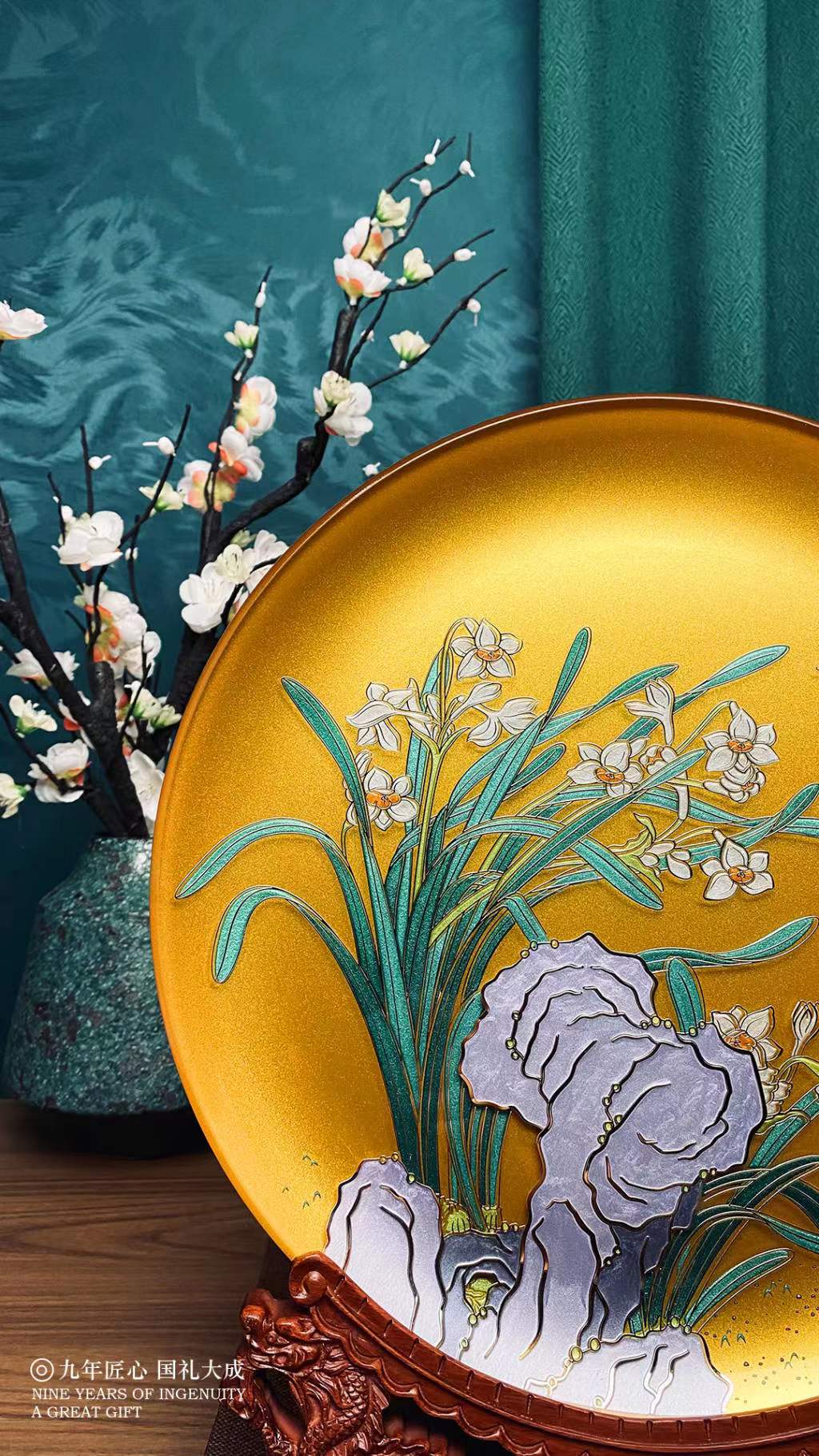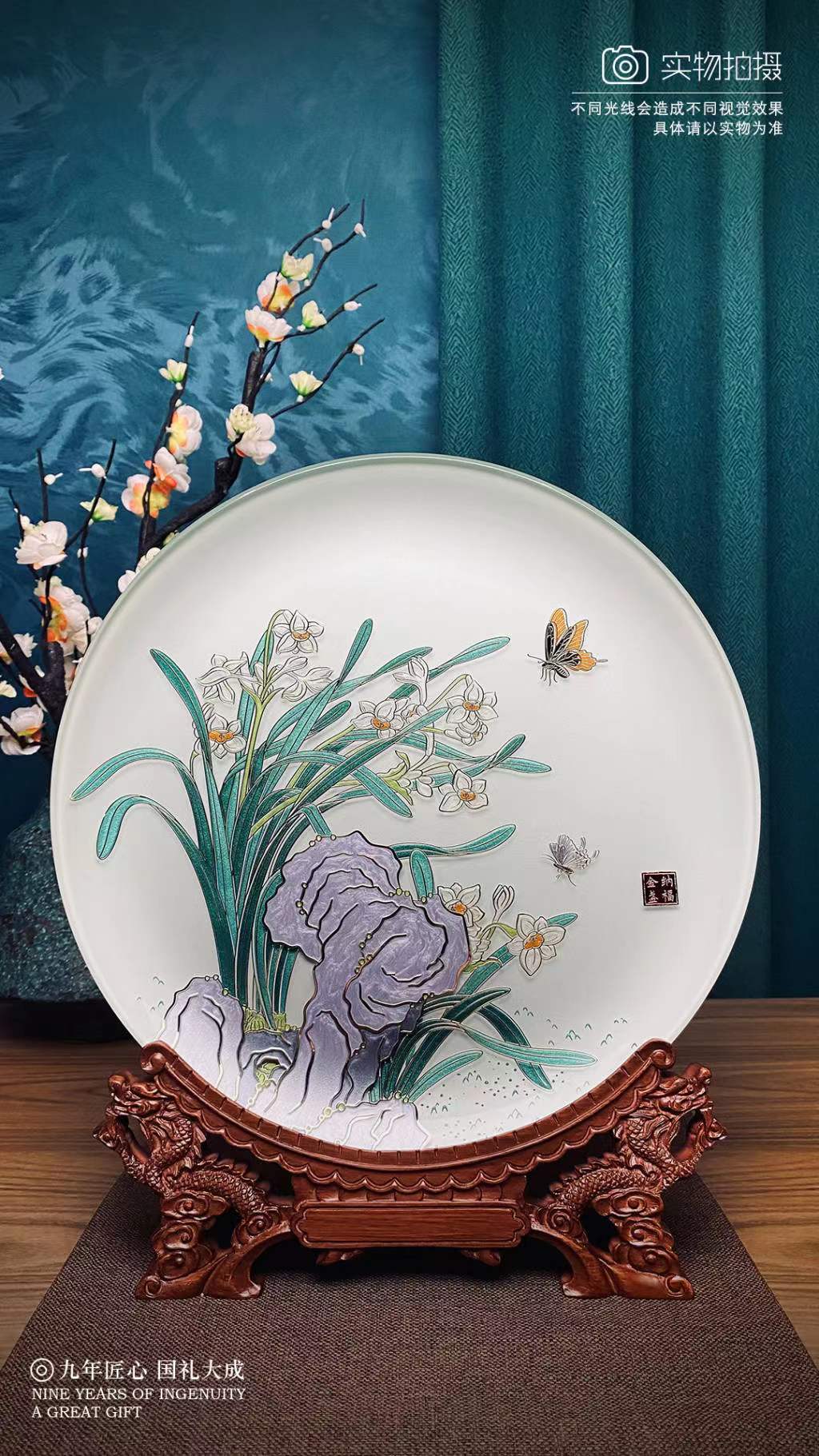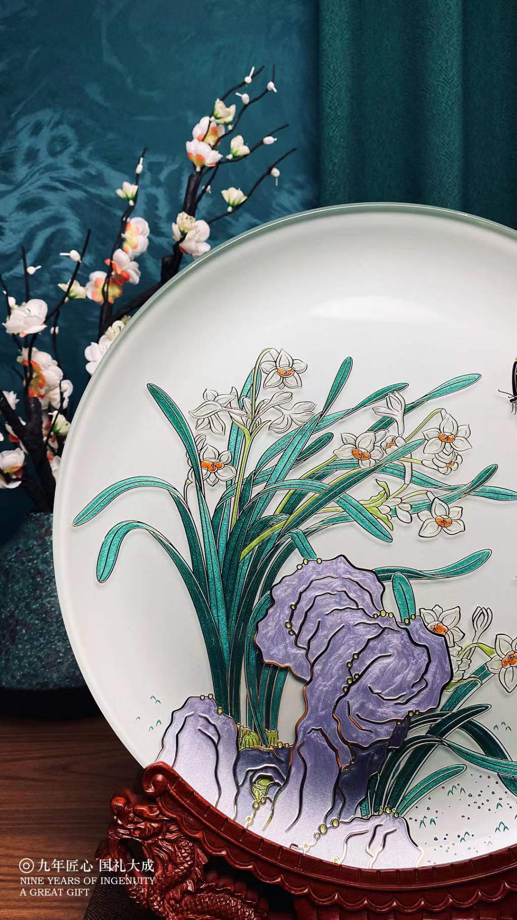 金盏纳福掐丝玻璃盘32cm