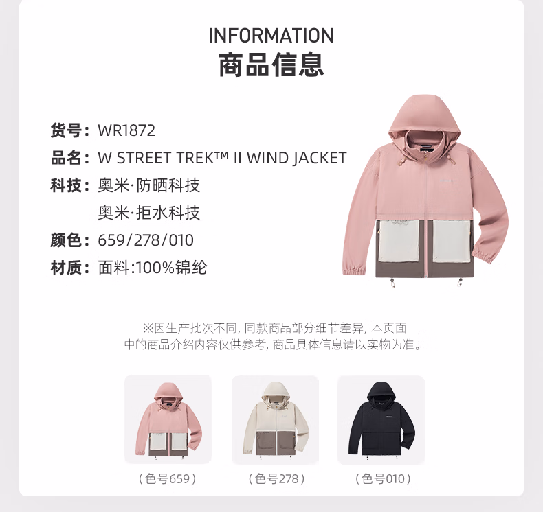 哥伦比亚穿行系列-女式轻薄防风外套WR1872