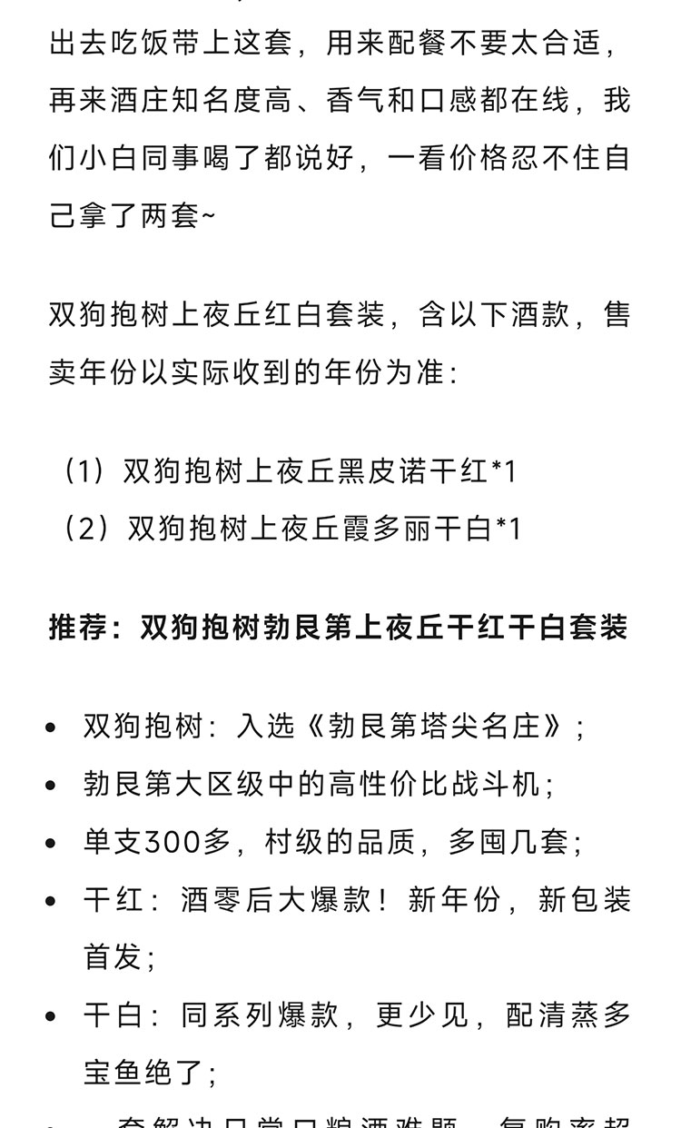 法国勃艮第双狗抱树上夜丘霞多丽干白+黑皮诺干红套装