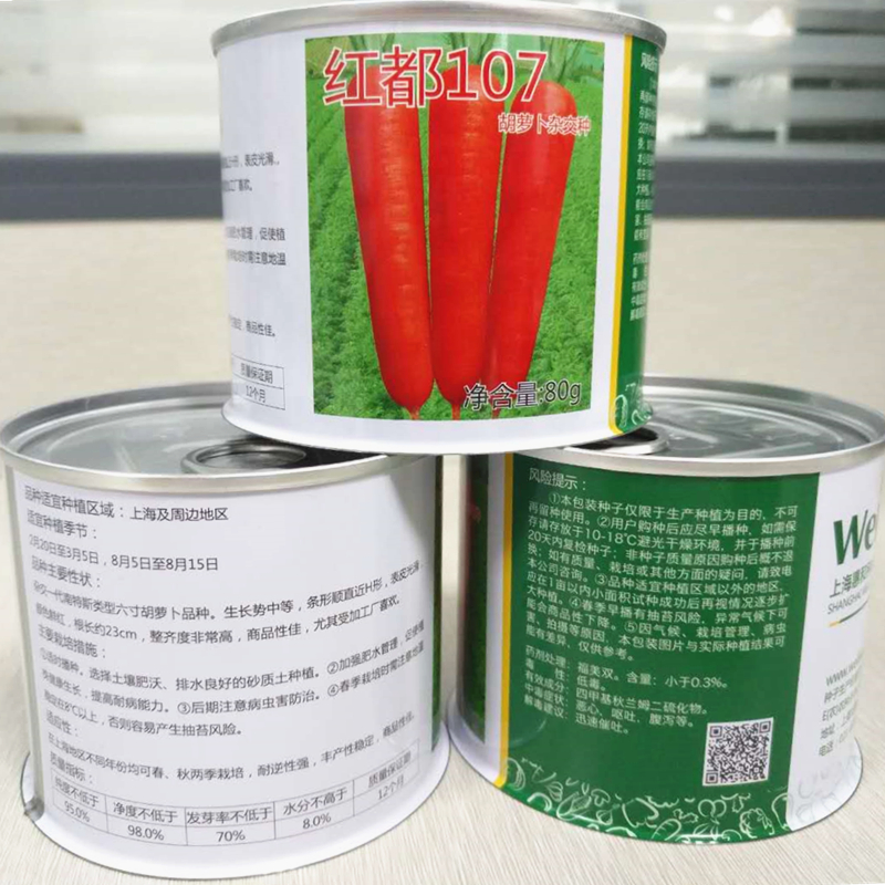 杂交一代南特斯类型六寸胡萝卜品种。生长势中等,条形顺直近H形,表皮光滑,颜色鲜红,根长约23cm,整齐度非常高,商品性佳,尤其受加工厂喜欢。