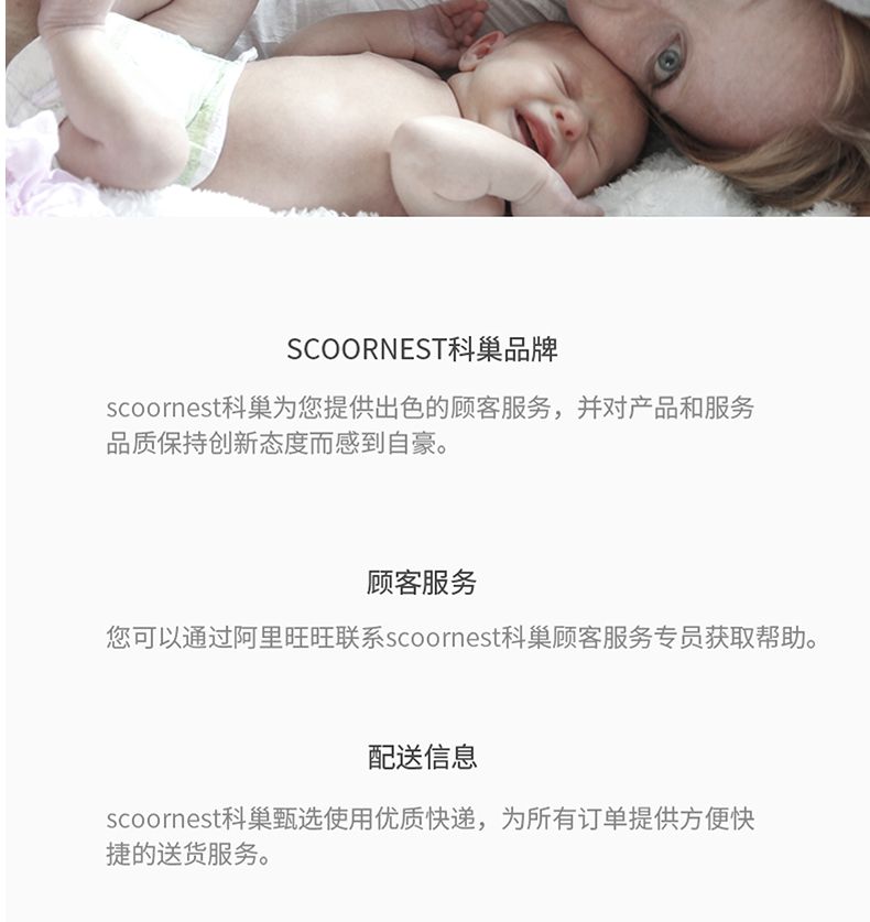 - Scoornest始终秉承给每一位宝宝送去科学的、关心的、创新的成长体验,通过提供商品和服务,使顾客形成守护、发展、巩固这种弥足珍贵的亲情的爱。