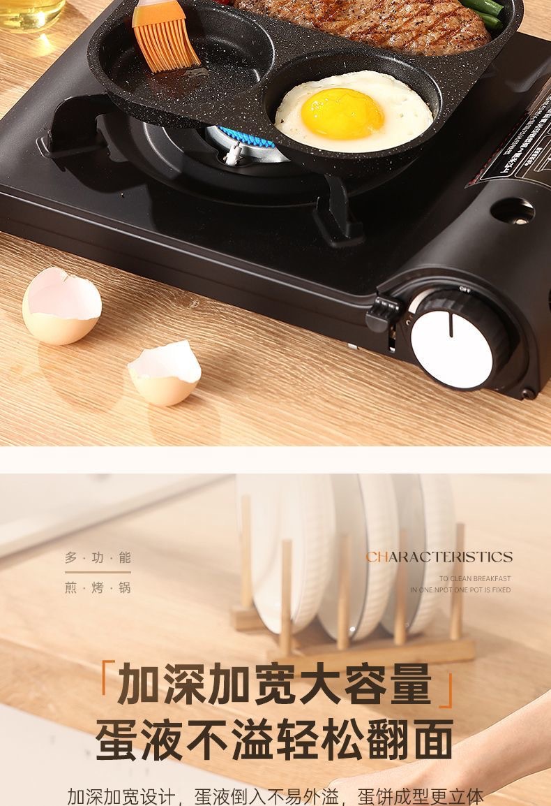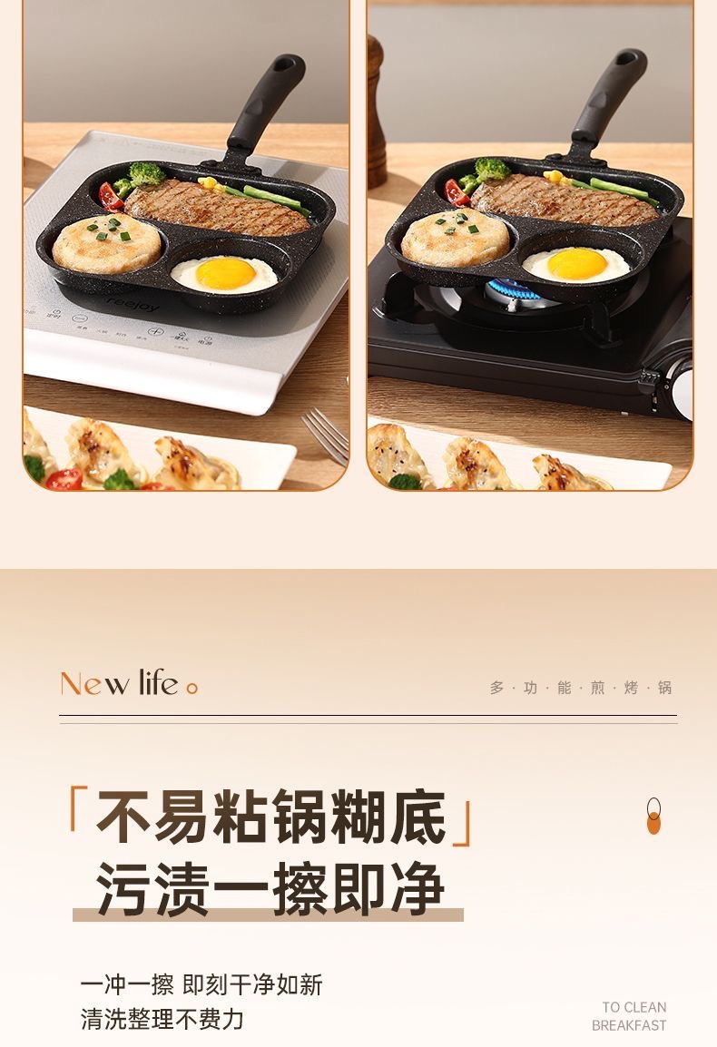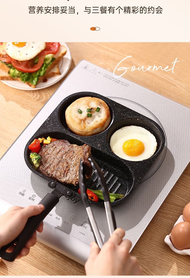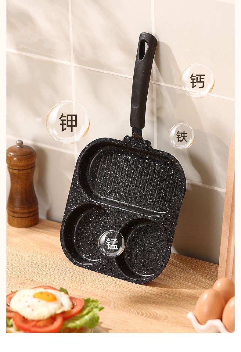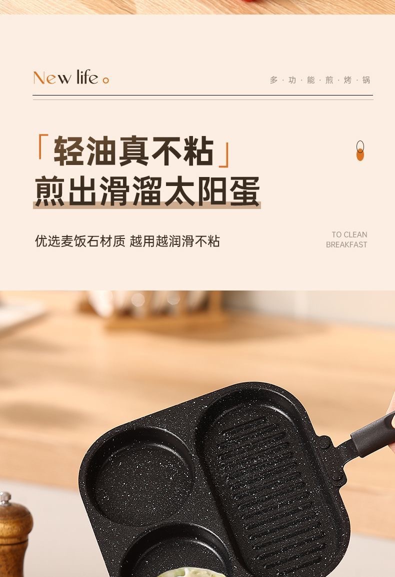 新款三合一多孔煎蛋香肠牛排煎锅家用不粘早餐锅多功能单底小煎锅