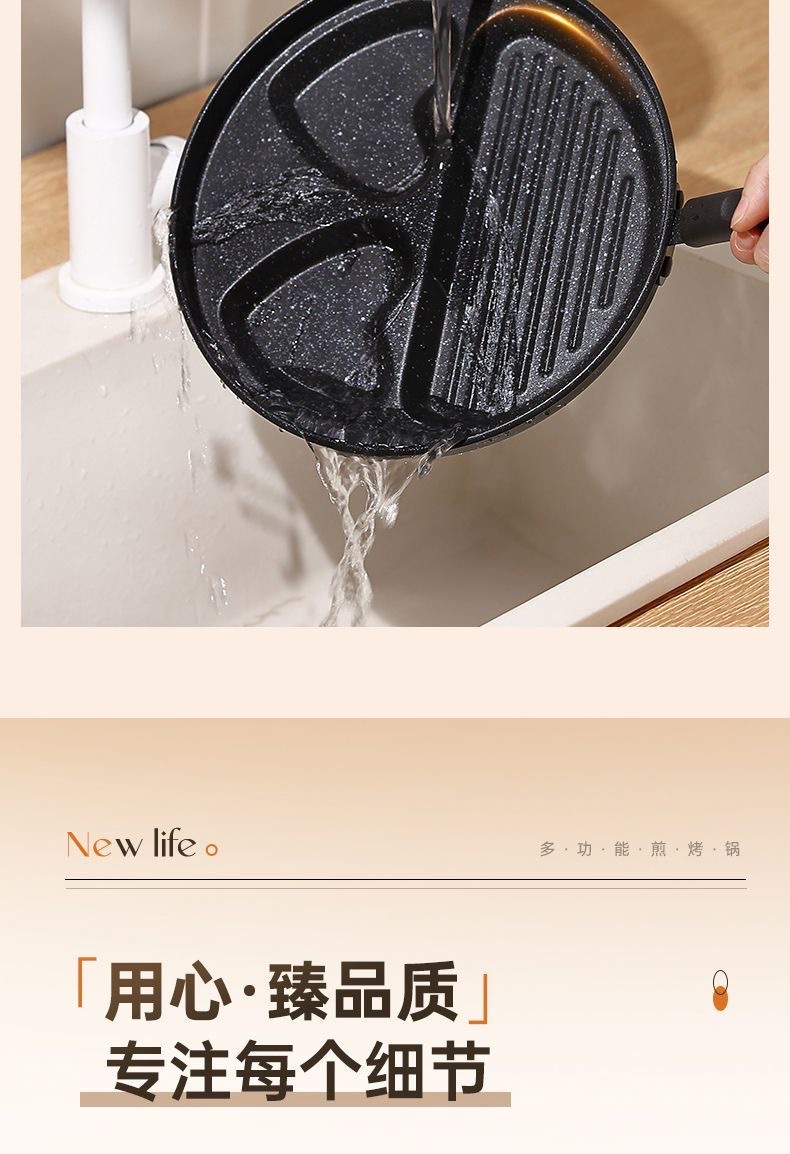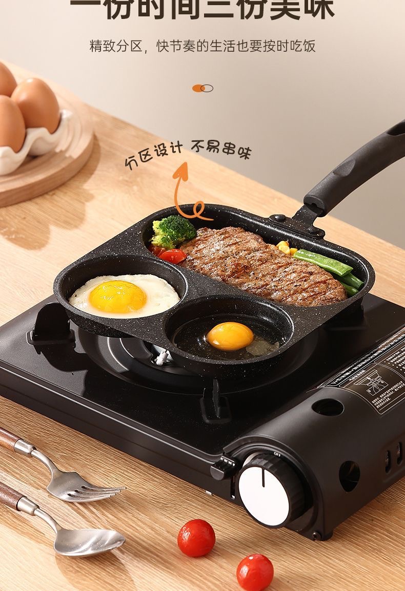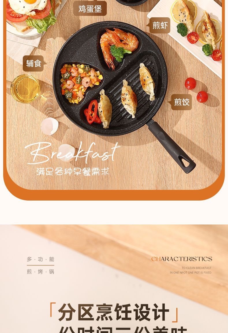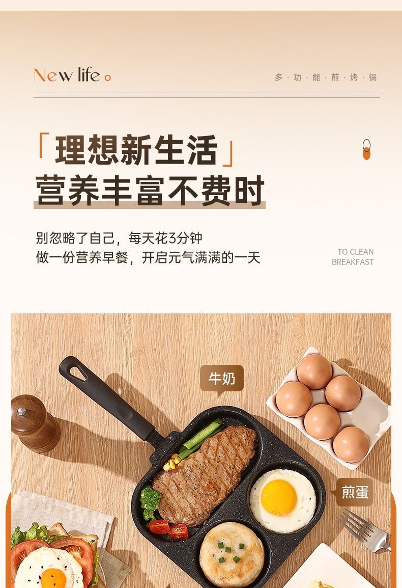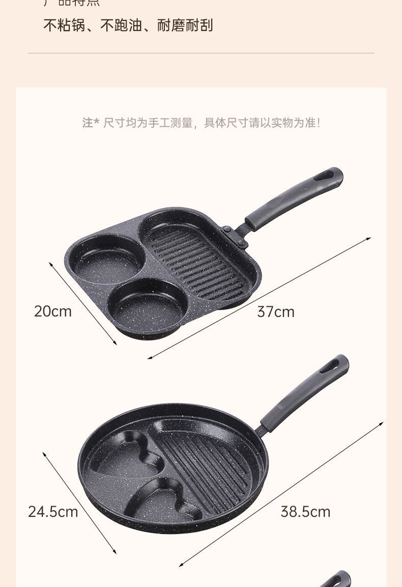 新款三合一多孔煎蛋香肠牛排煎锅家用不粘早餐锅多功能单底小煎锅