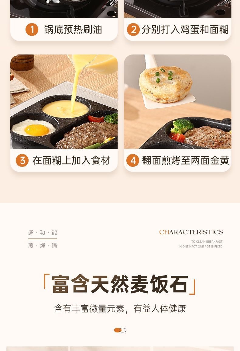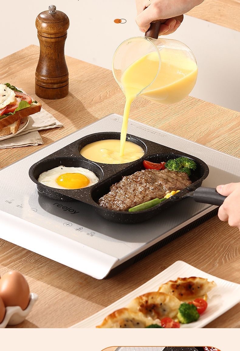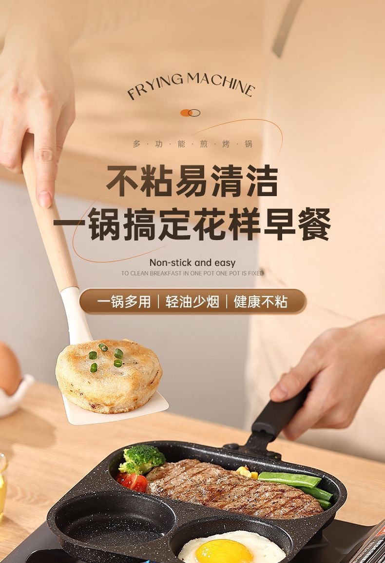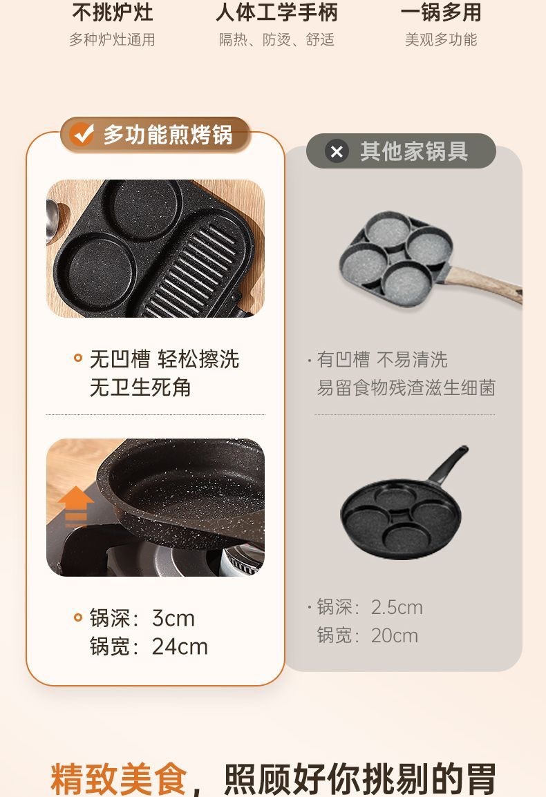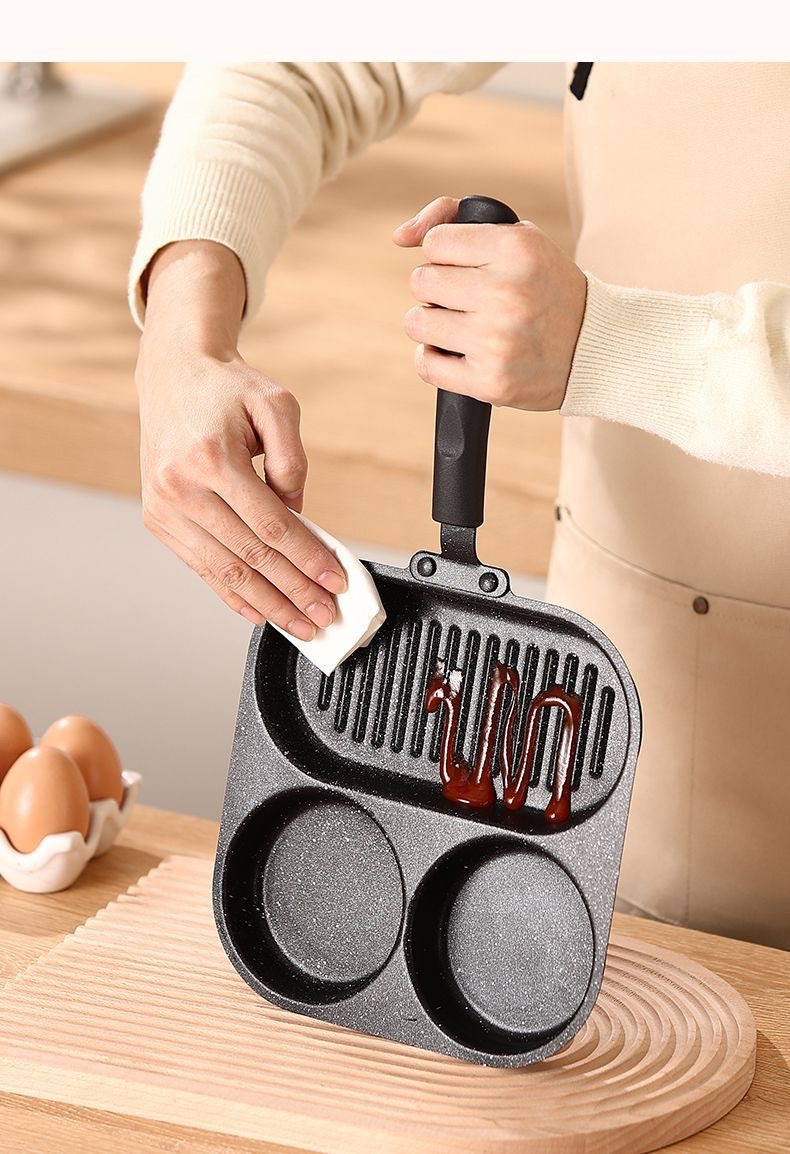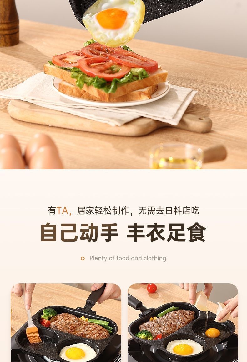 新款三合一多孔煎蛋香肠牛排煎锅家用不粘早餐锅多功能单底小煎锅