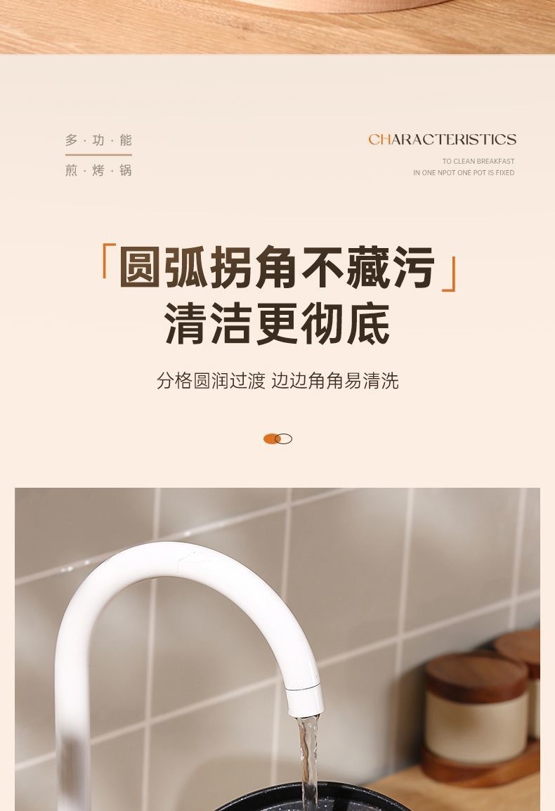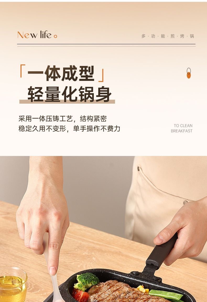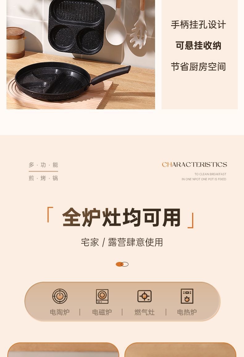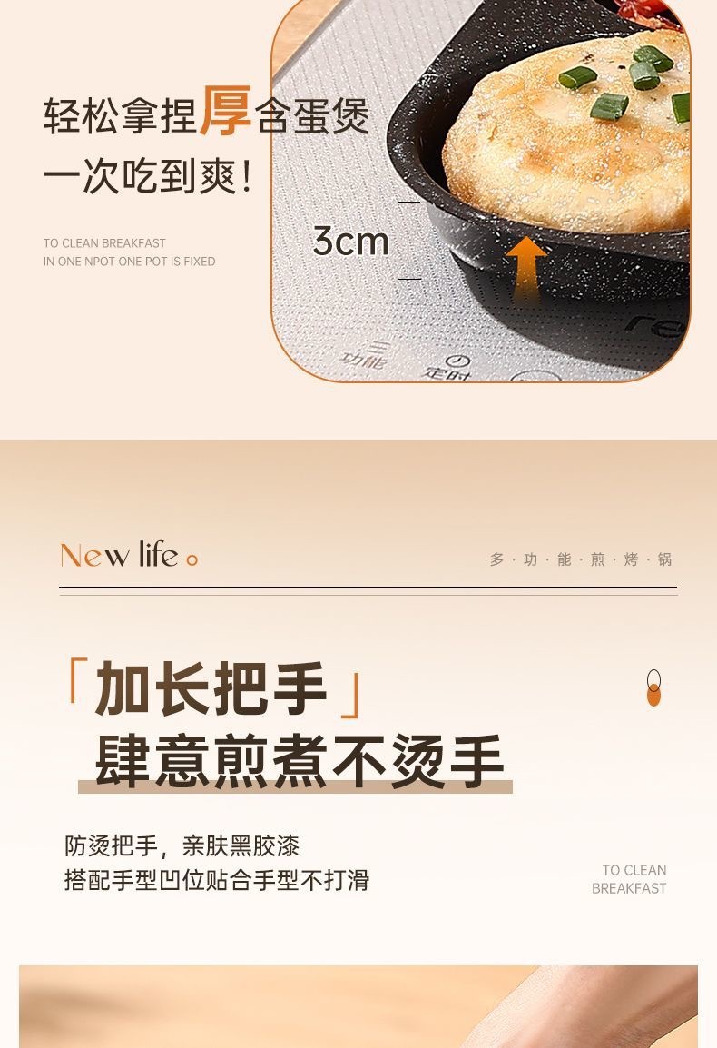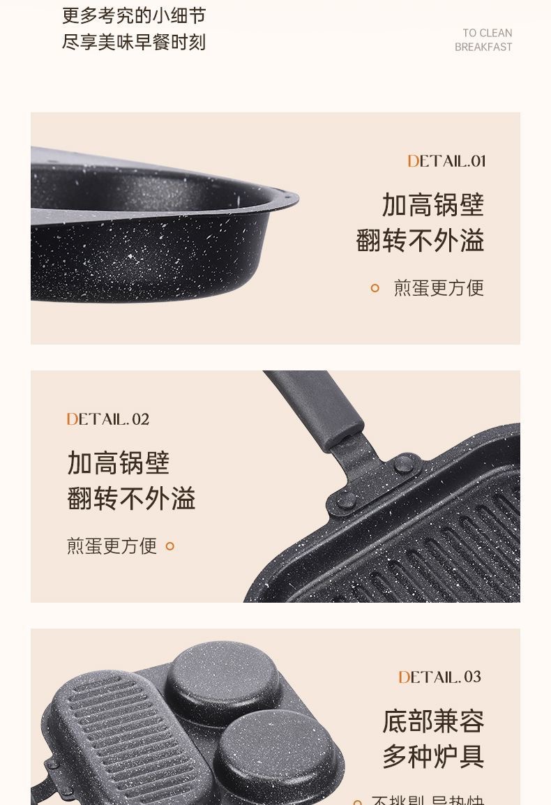 新款三合一多孔煎蛋香肠牛排煎锅家用不粘早餐锅多功能单底小煎锅
