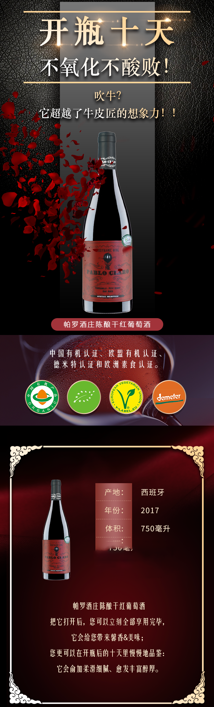 有机葡萄酒(帕罗酒庄) 6瓶起5折年货节优惠团购价 商品图4
