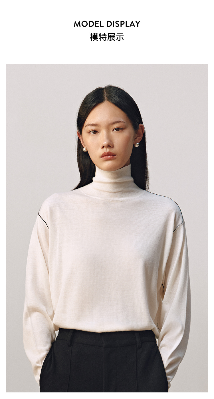 【JASON WU】(绵羊毛)秋冬新款撞色线羊毛高领针织衫