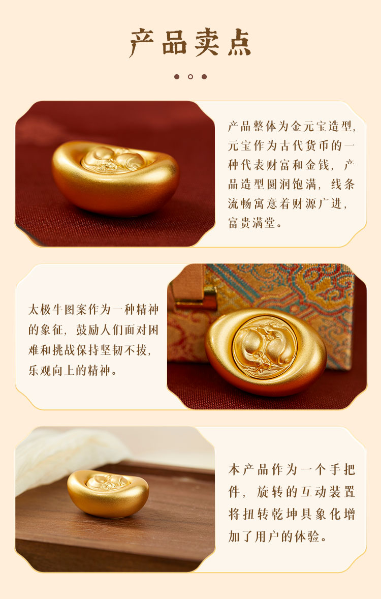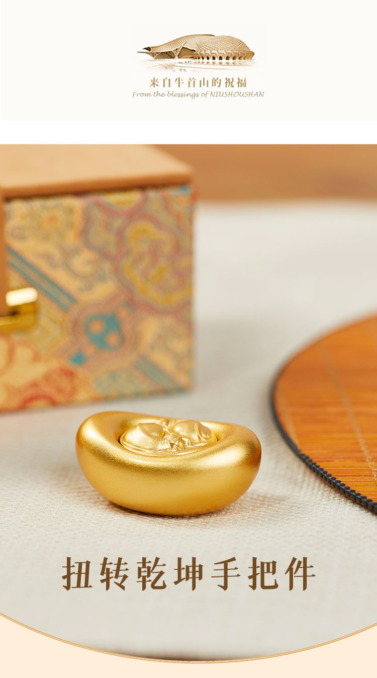 牛首山文创扭转乾坤手把件黄铜金色元宝招财摆件送领导长辈礼盒