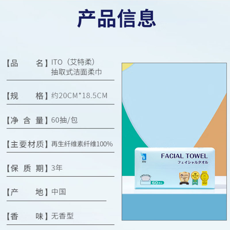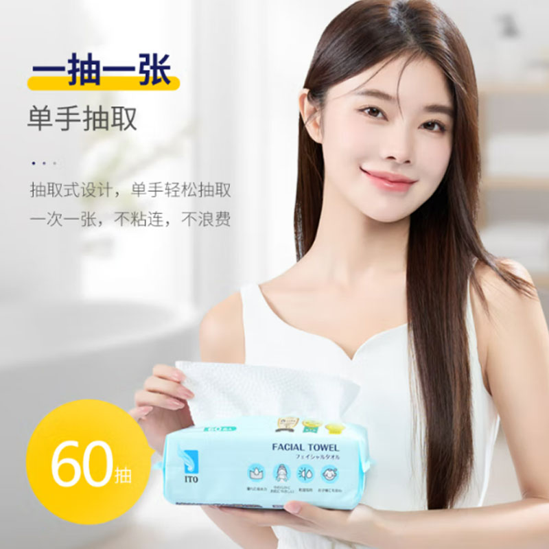 ITO抽取式洗脸巾60抽*3包一次性擦脸巾加厚洗面巾 YC