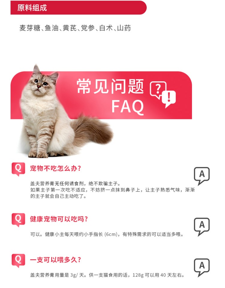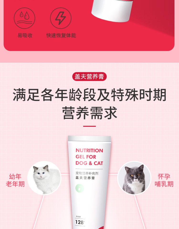 盖夫营养膏犬猫通用恢复体能幼犬幼猫增强免疫补钙含深海鱼油美毛