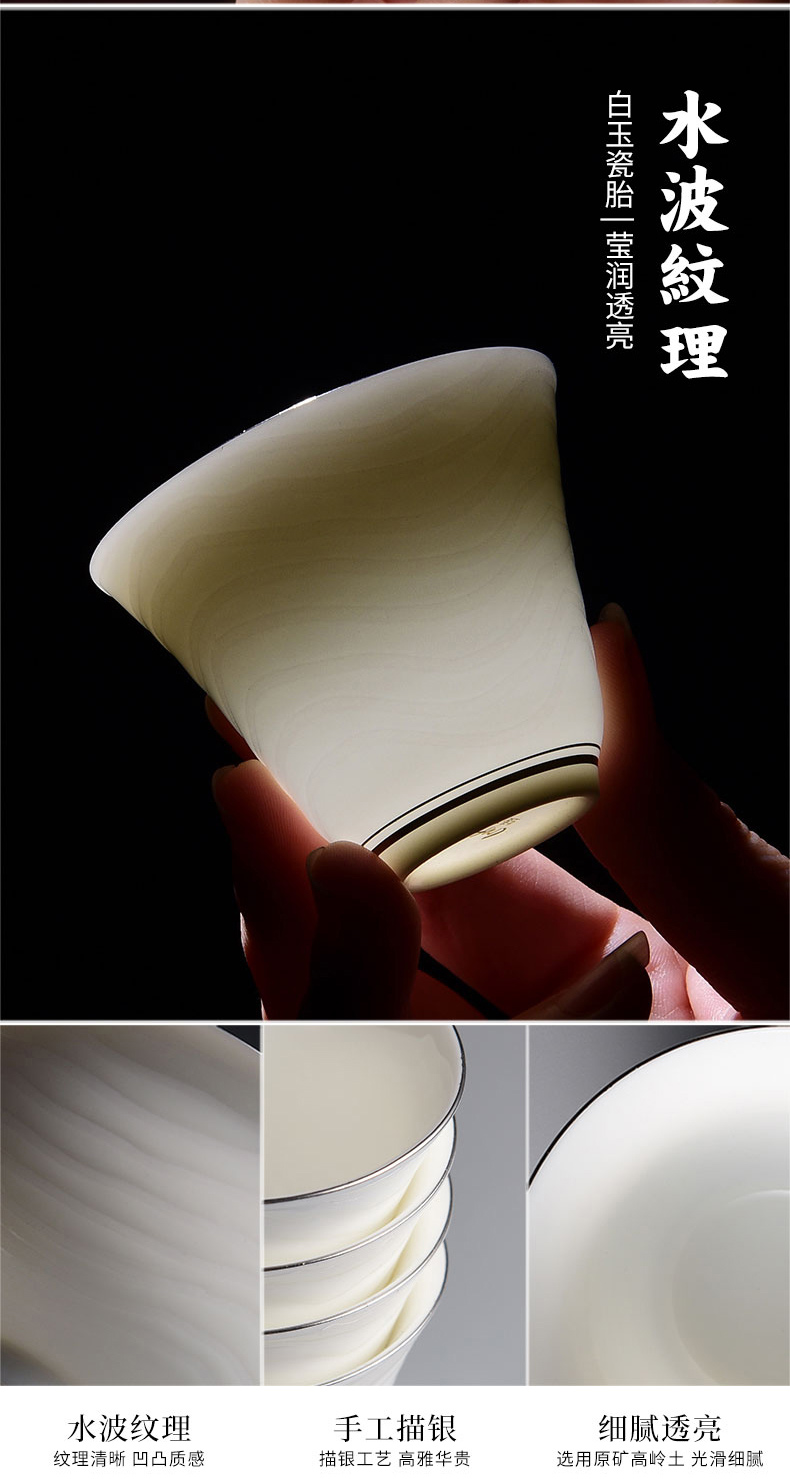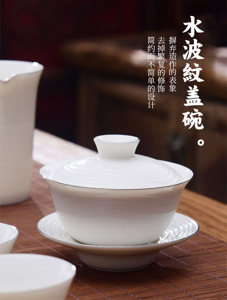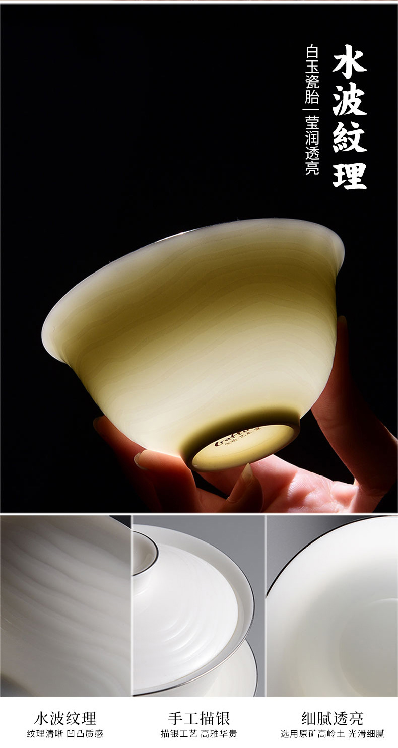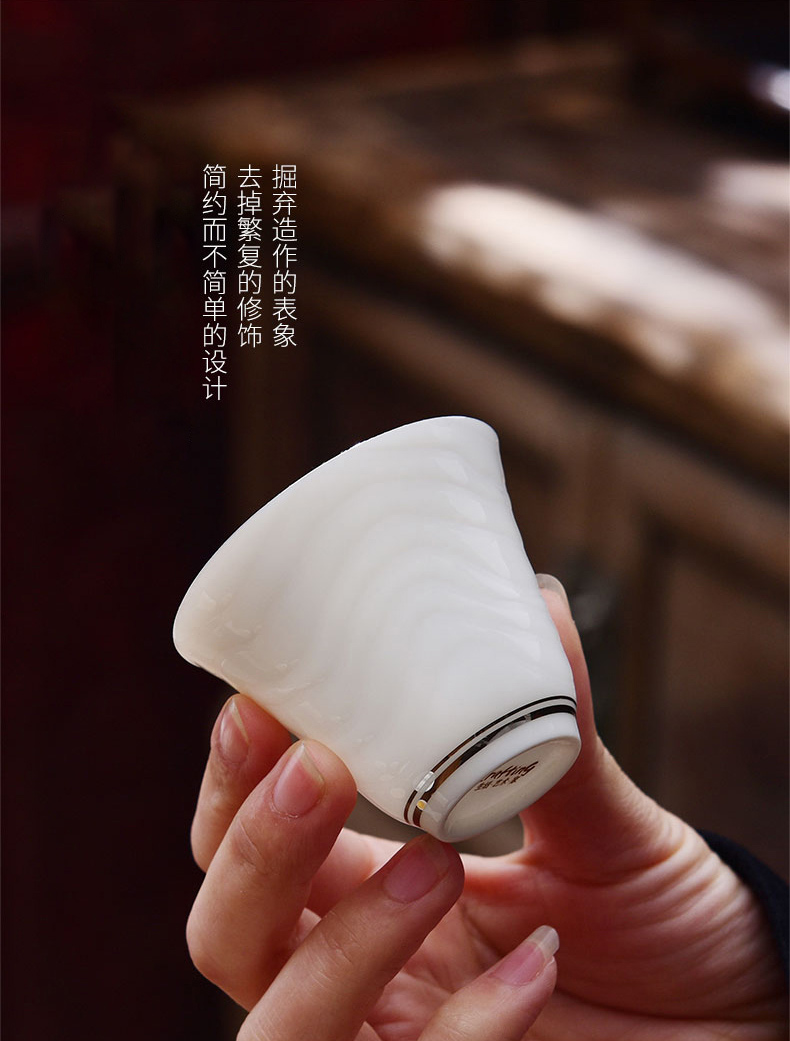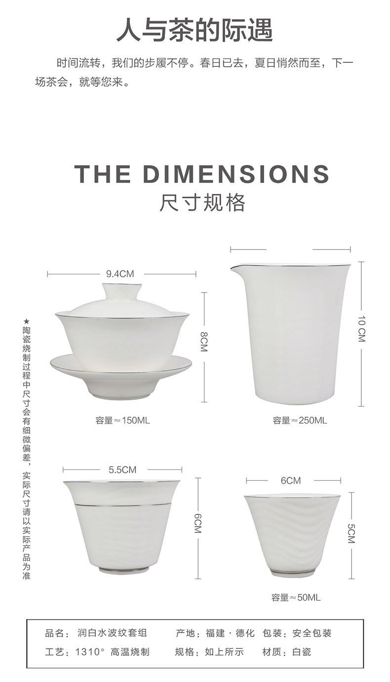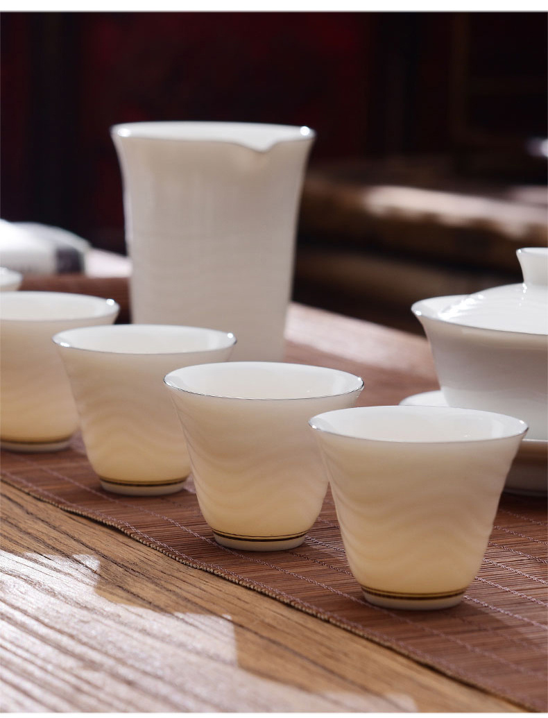 成艺德化白瓷水波纹茶杯品茗杯盖碗功夫茶具套装礼盒装