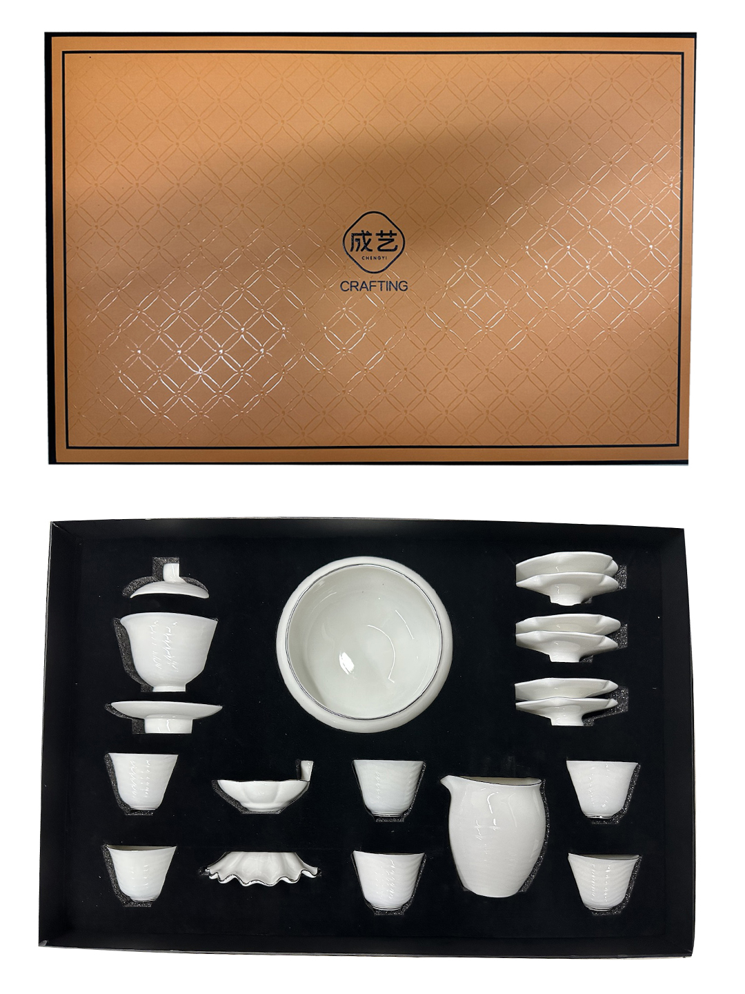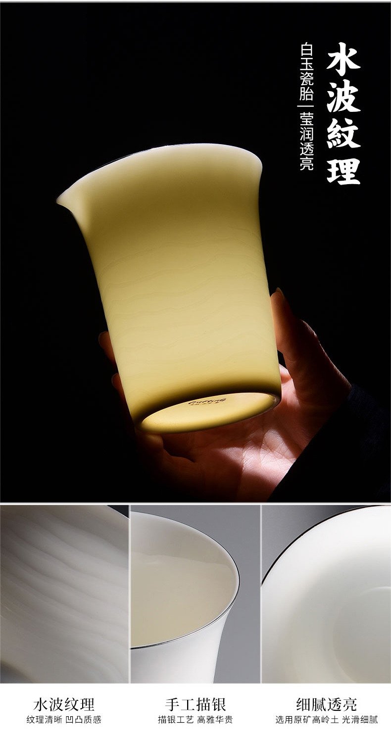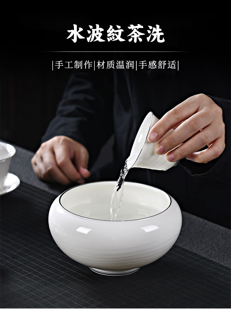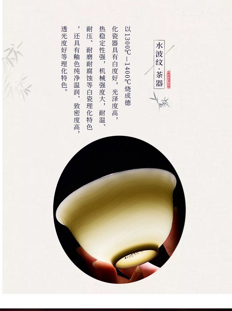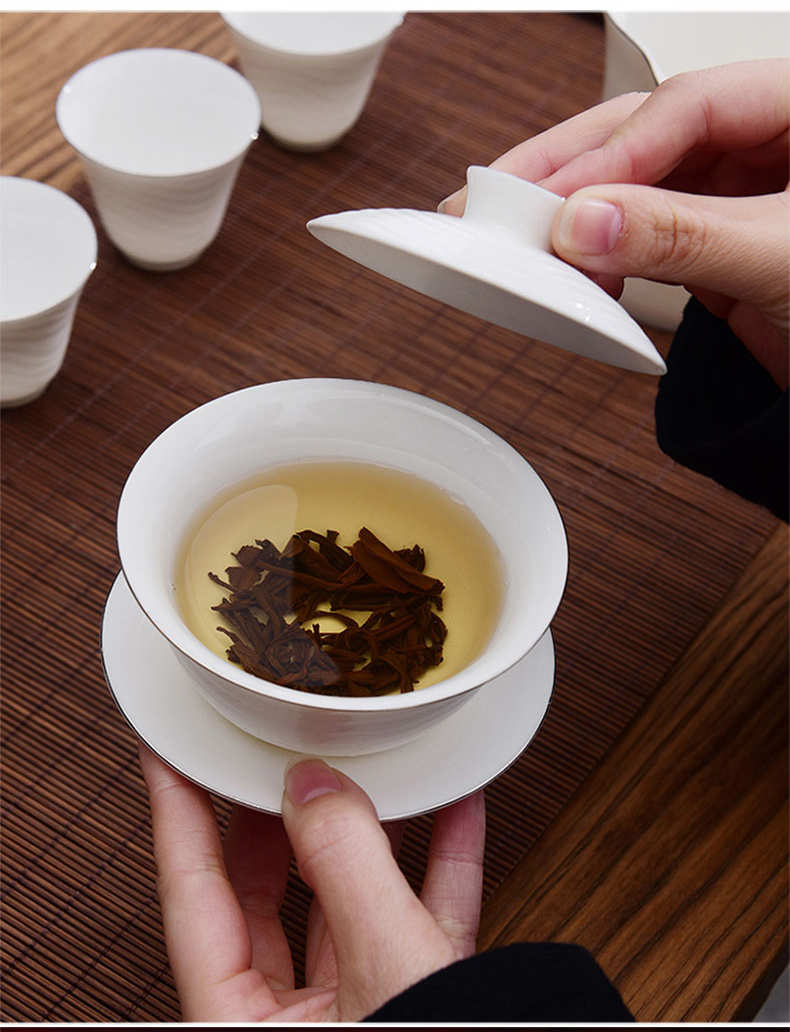 成艺德化白瓷水波纹茶杯品茗杯盖碗功夫茶具套装礼盒装