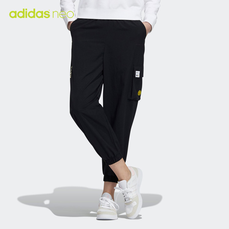 Adidas阿迪达斯NEO女装女裤2022春季新款笑脸运动服HE7953 HE7950