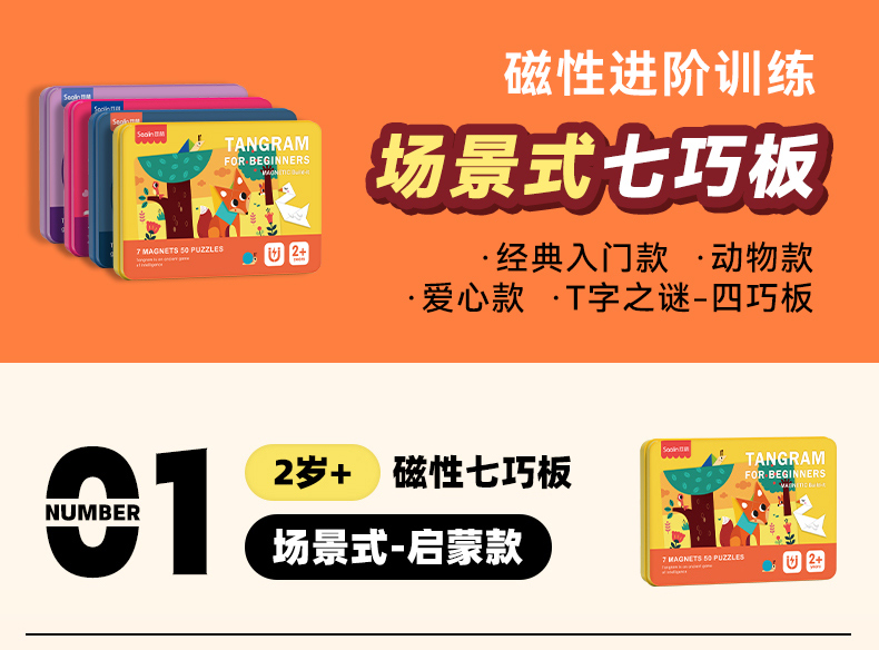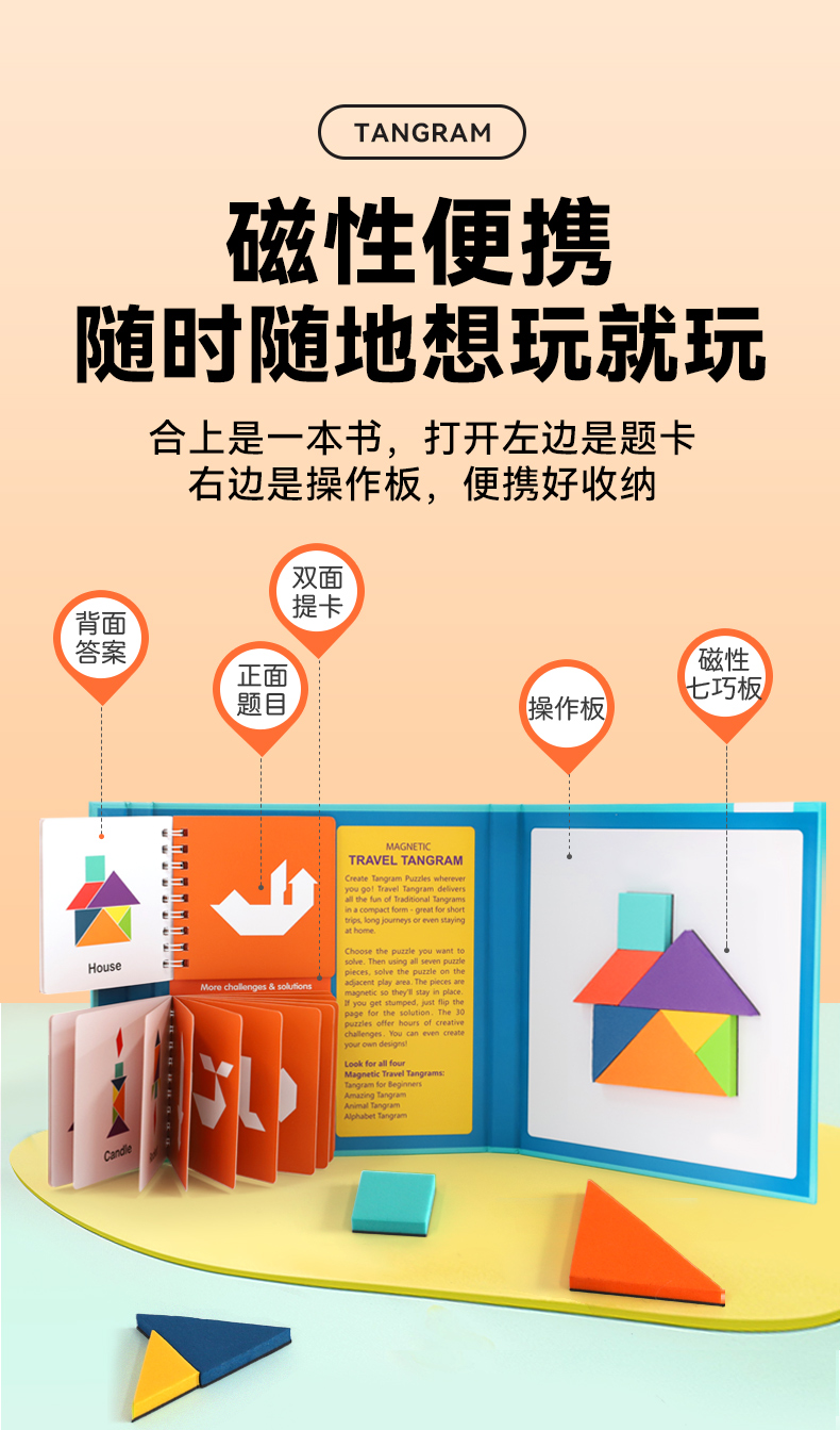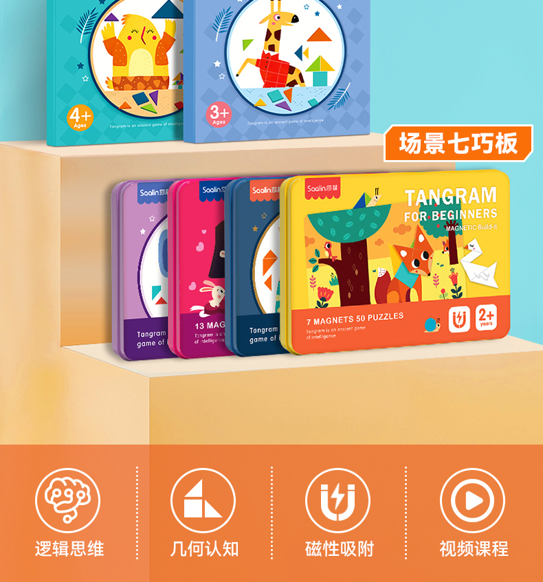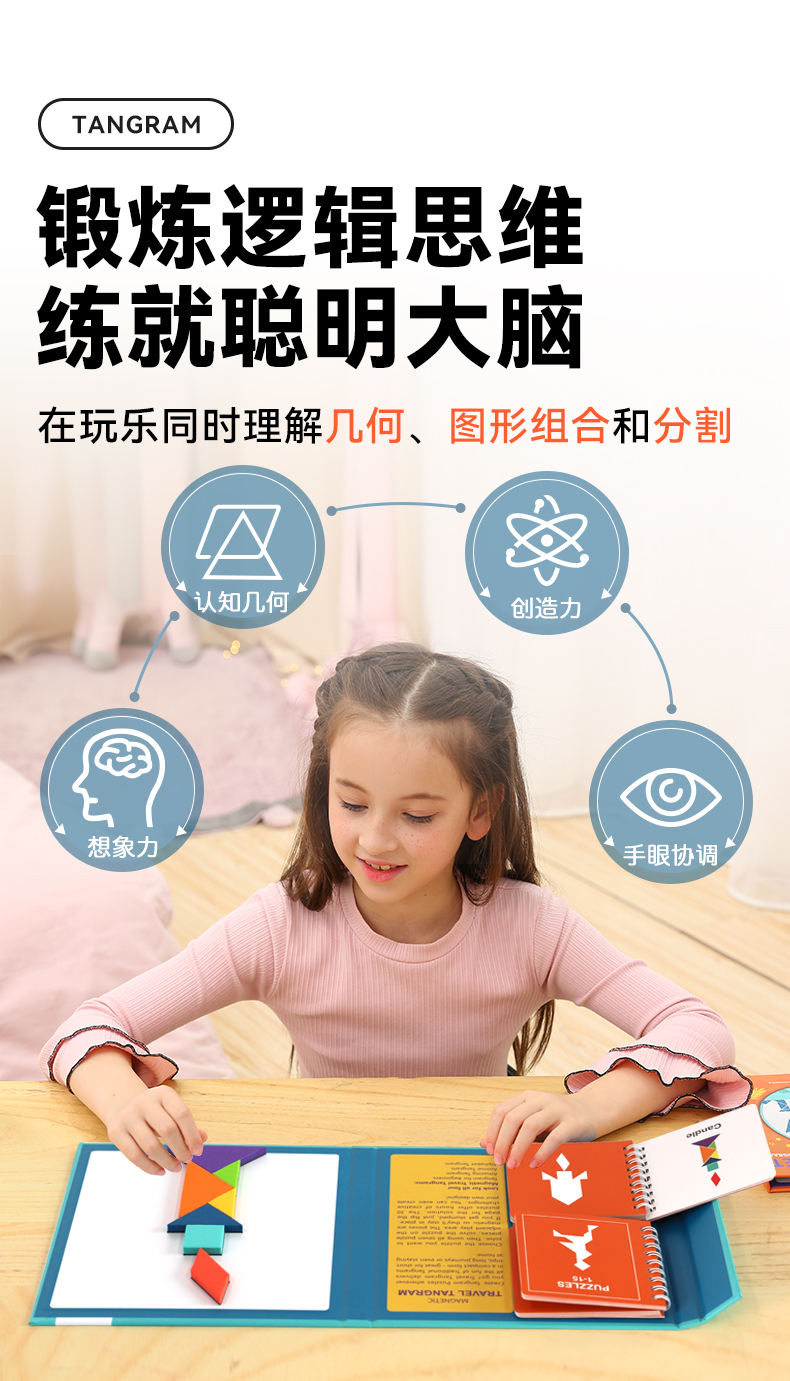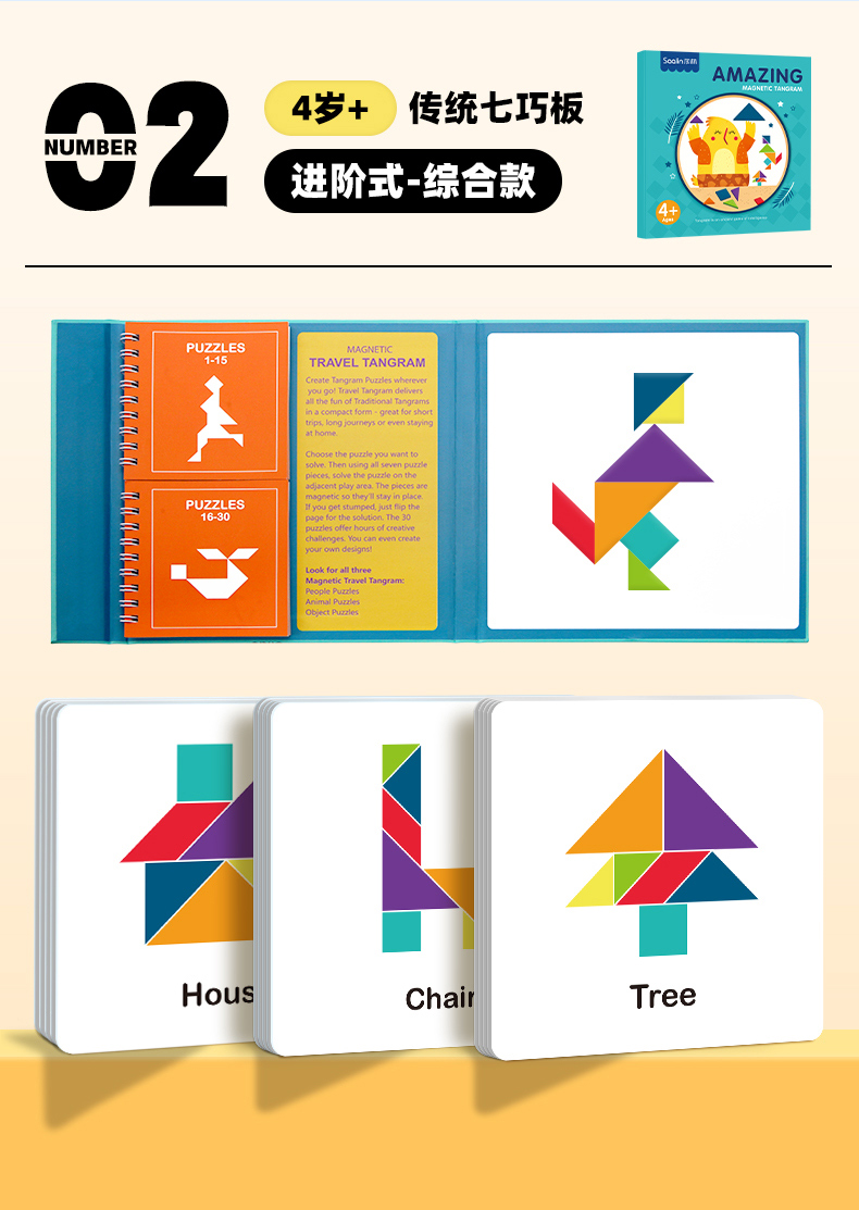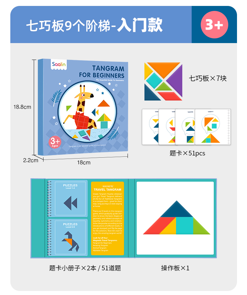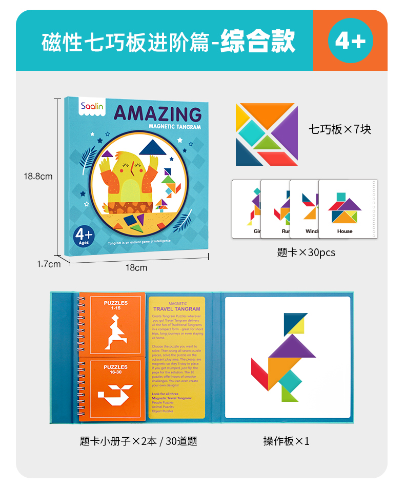 【莎林】磁性智慧七巧板最新款磁力进阶书本式传统式延伸式