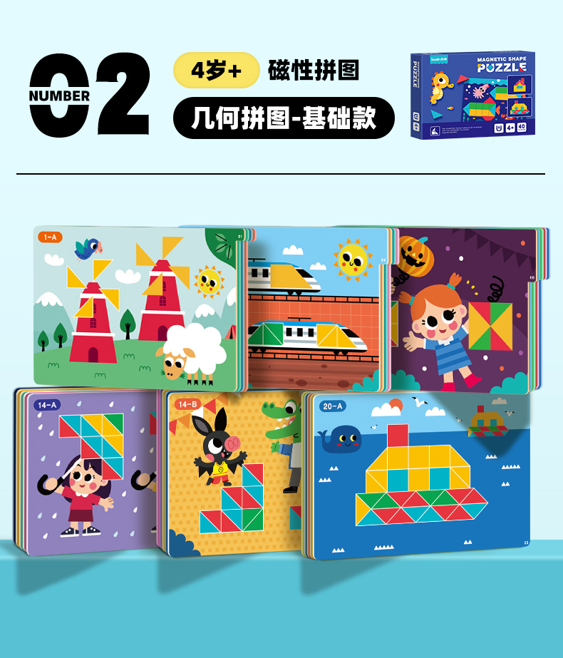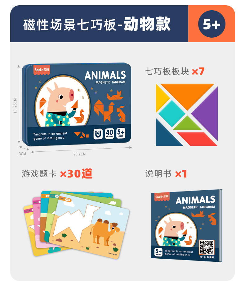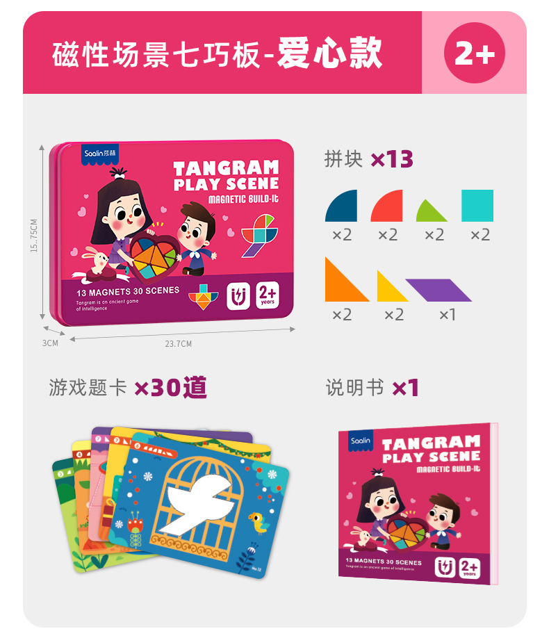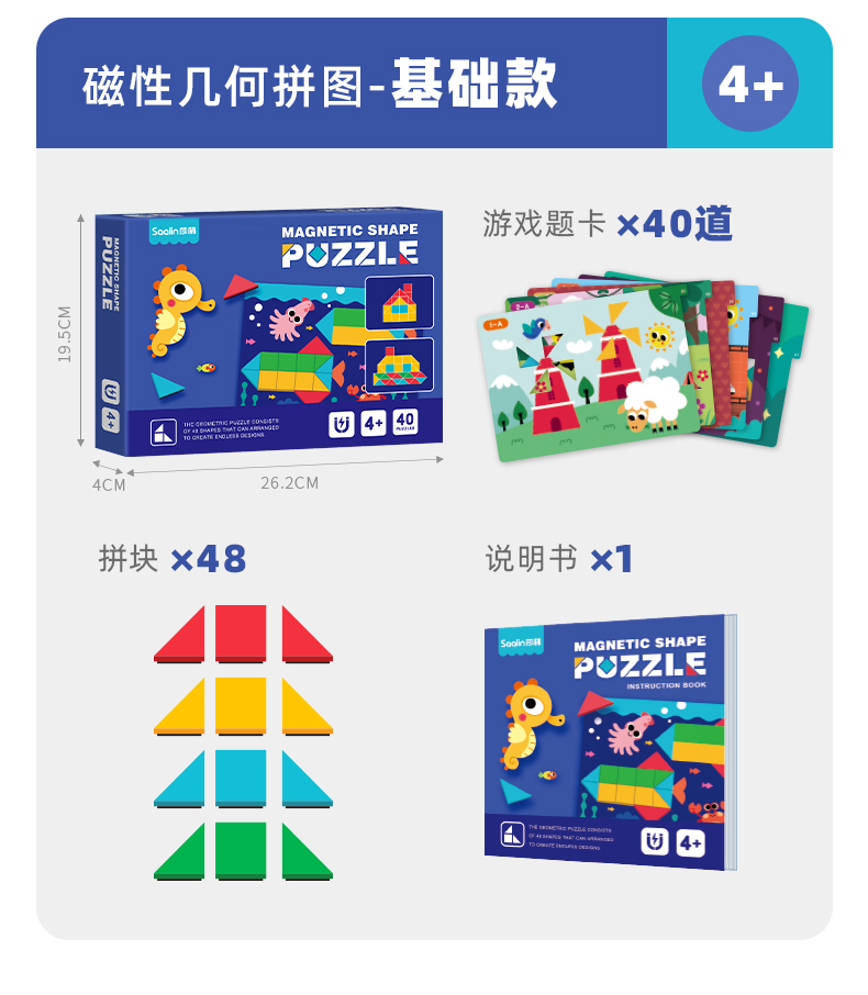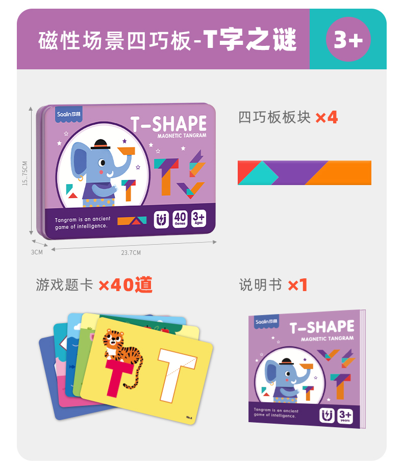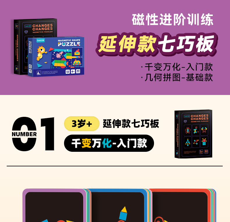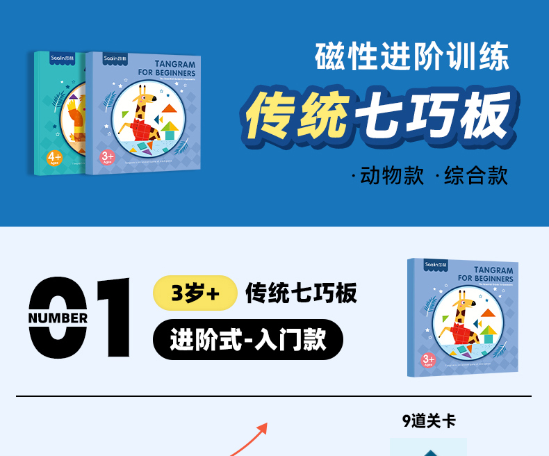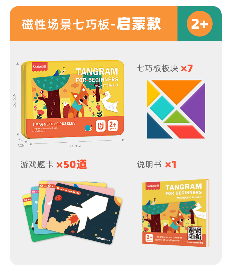 【莎林】磁性智慧七巧板最新款磁力进阶书本式传统式延伸式