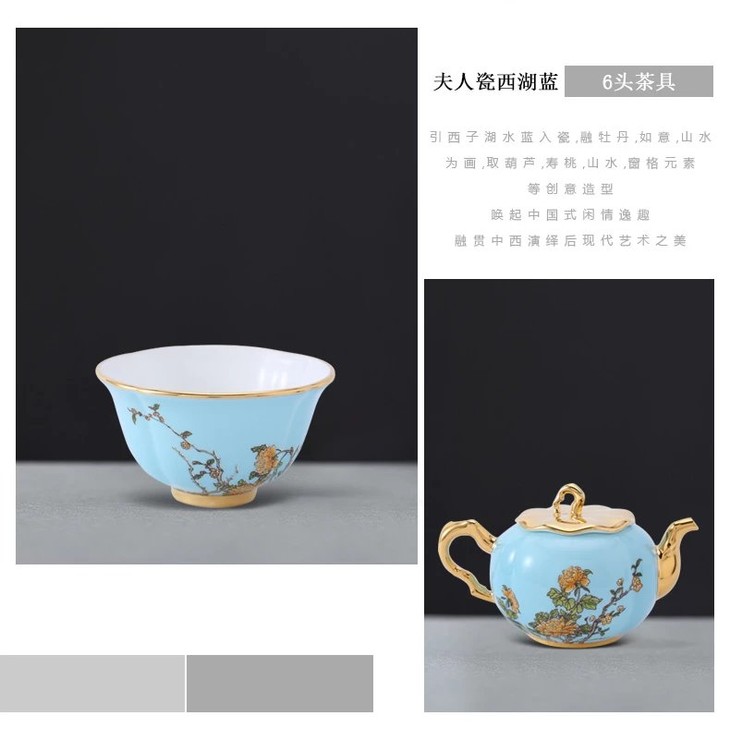 夫人瓷-《西湖蓝六头茶具》