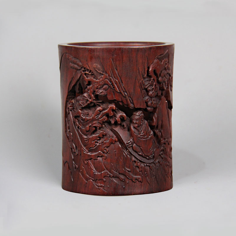 圣人泛舟°木雕笔筒