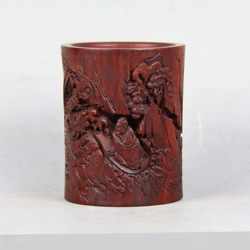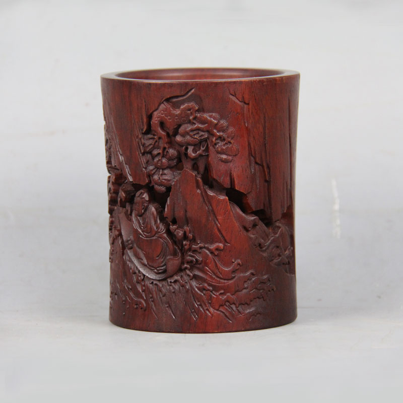 圣人泛舟°黑檀小笔筒
