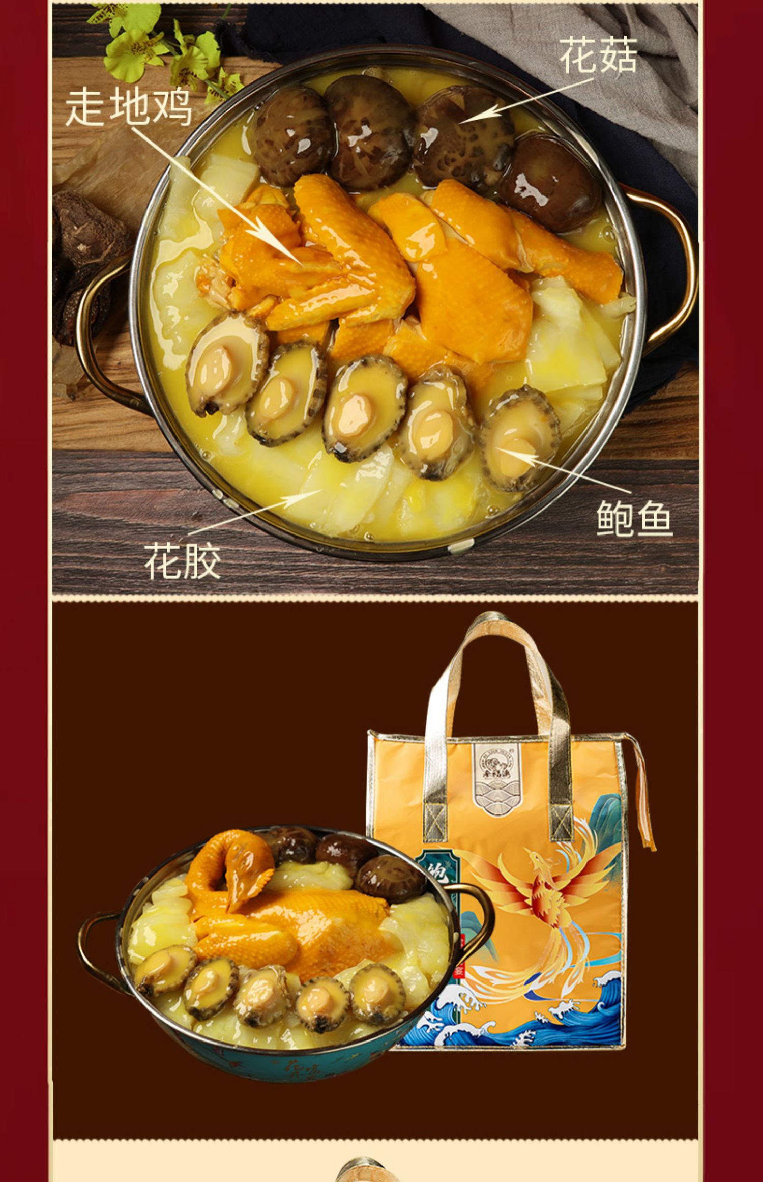 参福连鲍鱼花胶鸡1.5Kg礼盒装(带锅) Q弹软糯浓香金汤 深海花胶软糯 加热即食 礼赠佳品