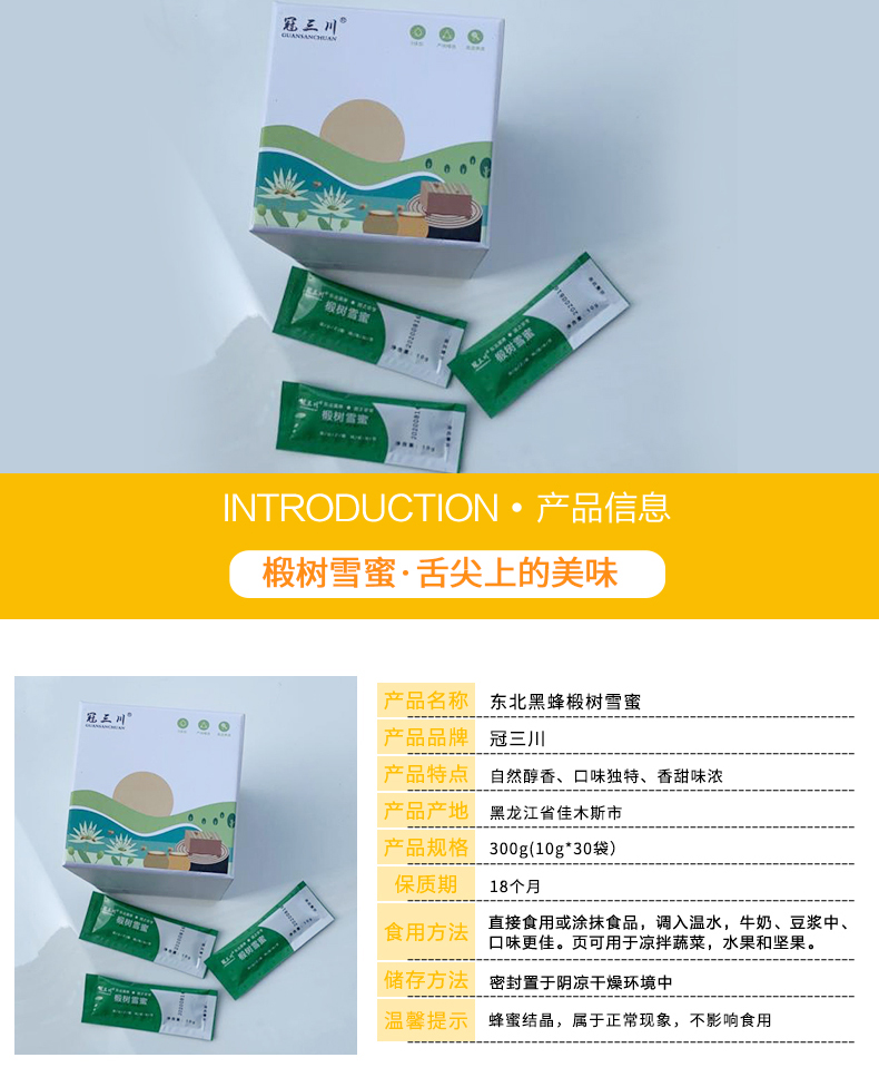 冠三川东北黑蜂椴树雪蜜(便携装)300g(10g*30袋)