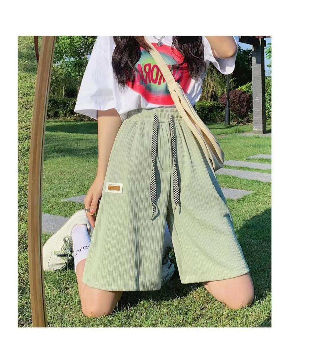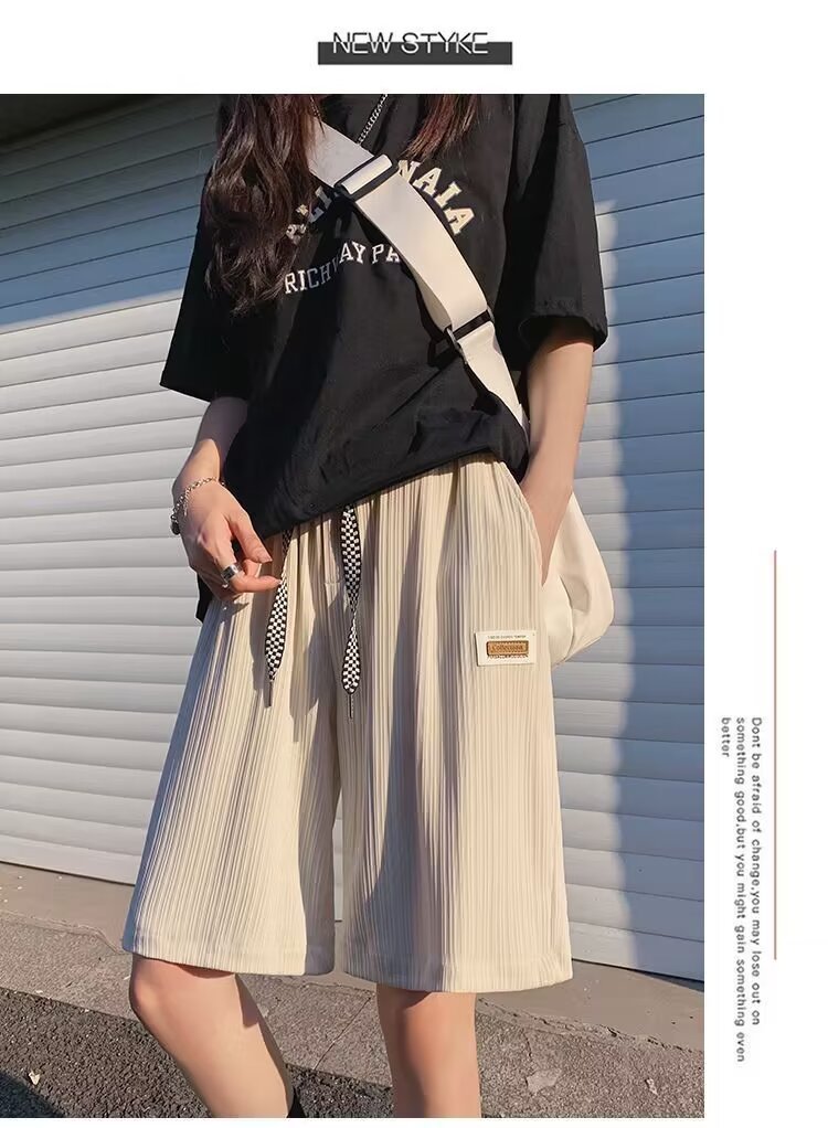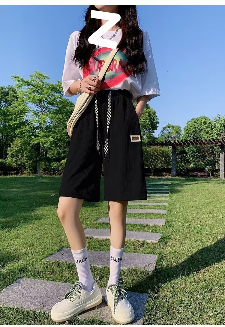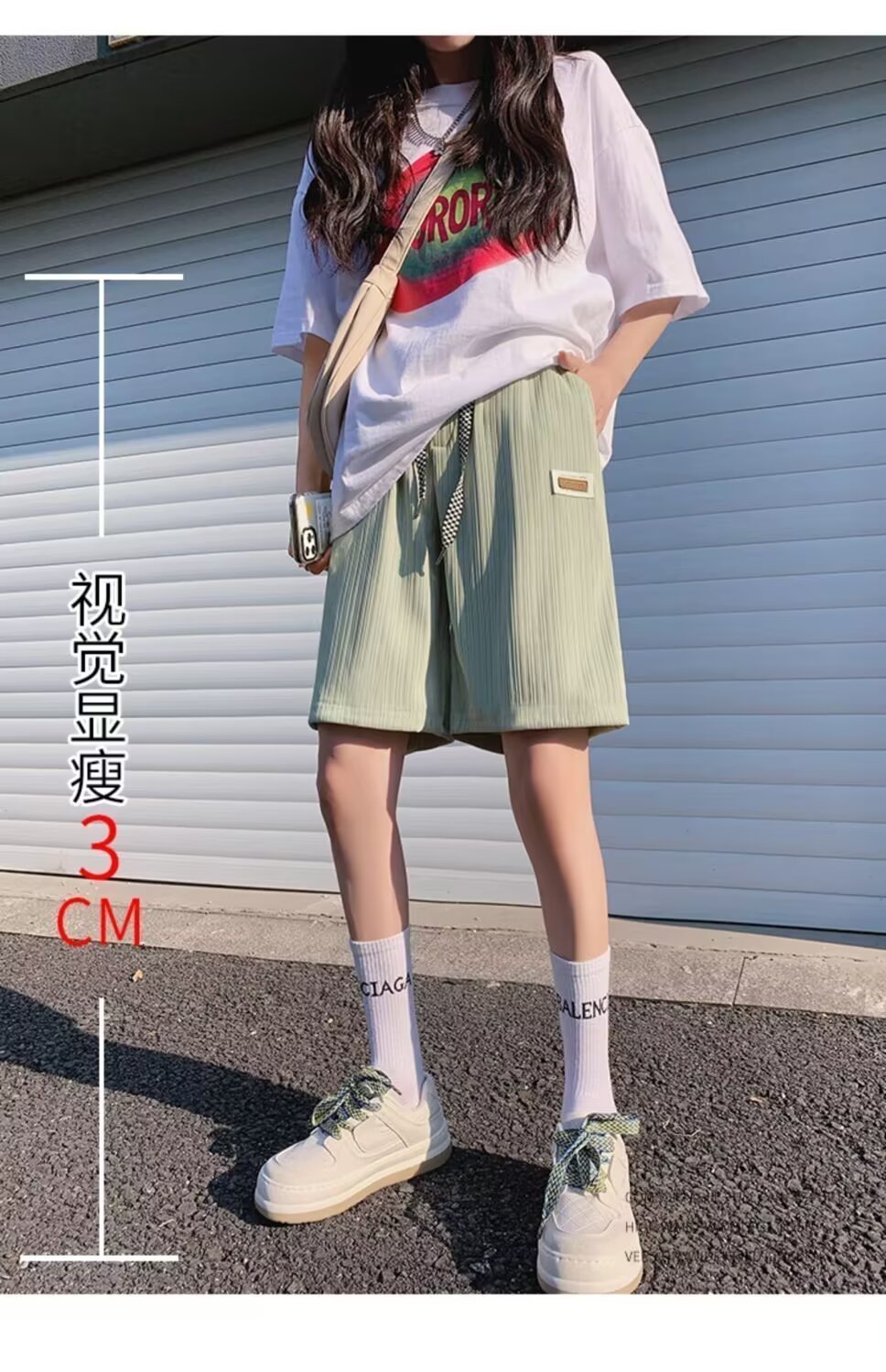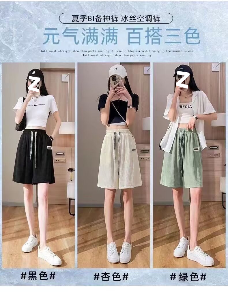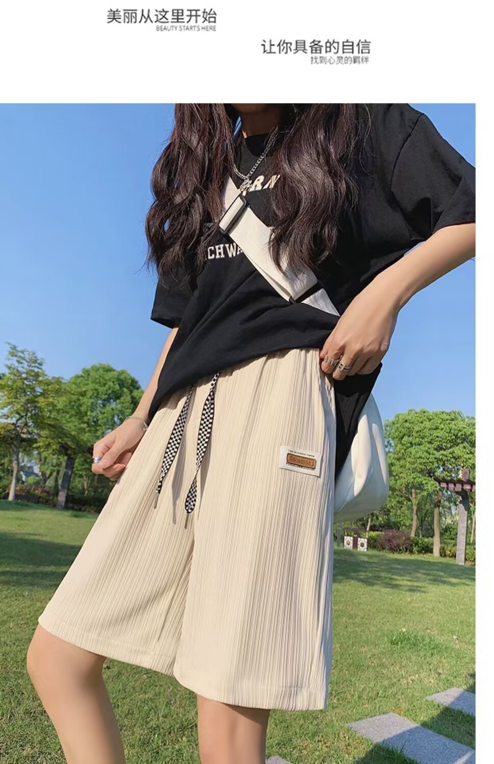 【穿出个性感!会吃肉的冰丝短裤!】显高显瘦舒适松紧腰围,透气亲肤舒适,版型宽松肌理清晰,穿起来舒适自如,斜口袋方便凹造型,长度的设计刚好,女夏季薄款新款阔腿运动短裤潮